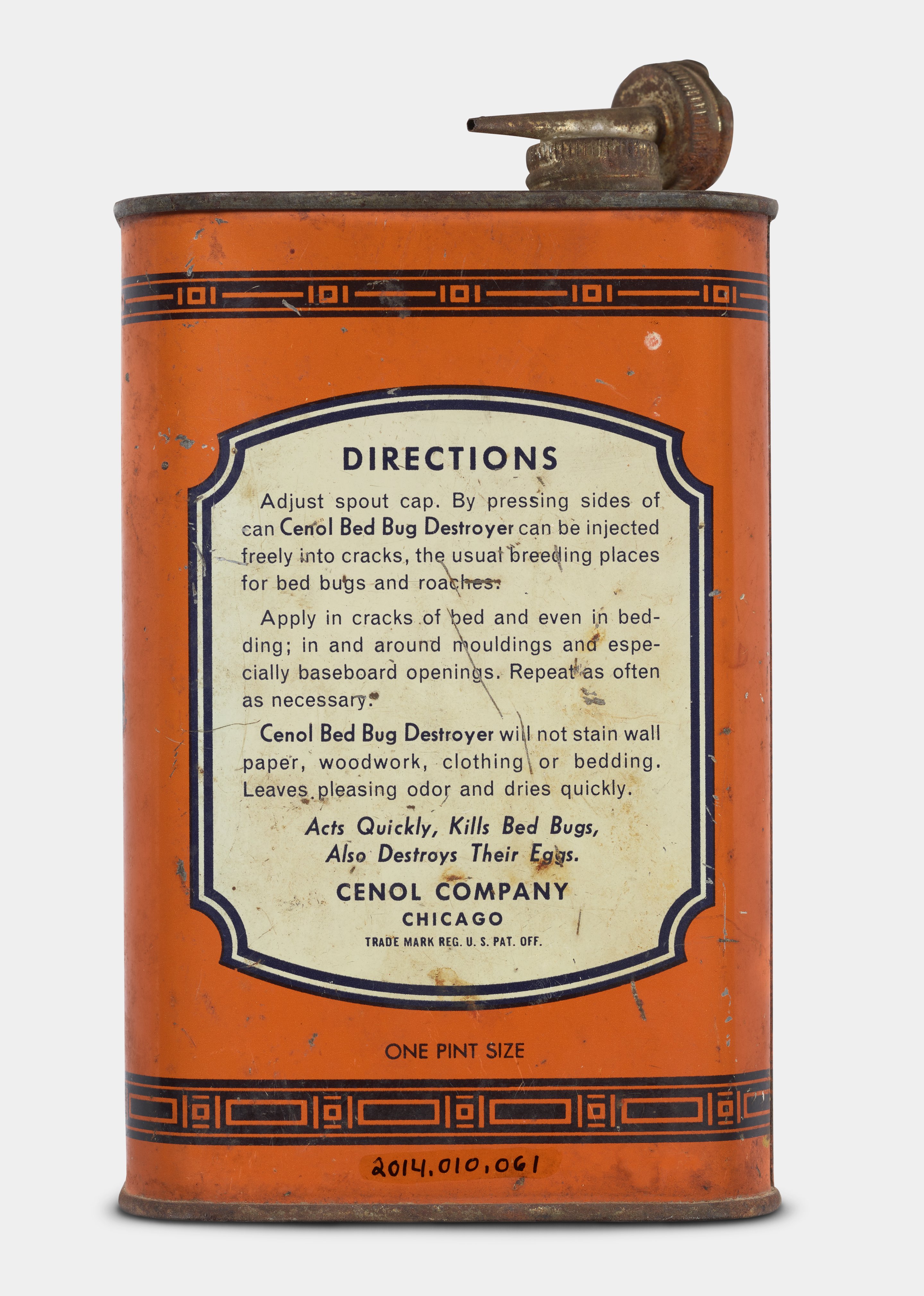 Science History Institute. Cenol Bed Bug Destroyer. Photograph, 2018. Science History Institute. Philadelphia. https://digital.sciencehistory.org/works/3b591966p.