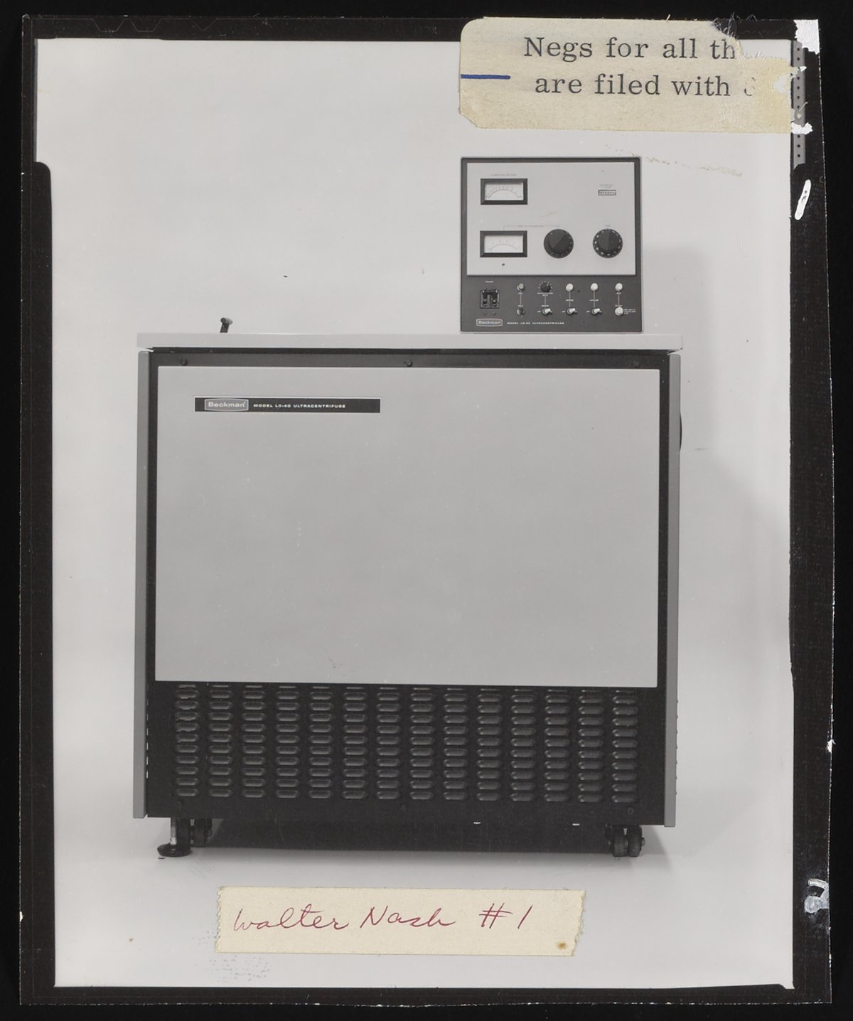 Nash, Walter. “Beckman Model L3-40 and Model L3-50 Ultracentrifuges,” n.d. Beckman Historical Collection, Box 59, Folder 68. Science History Institute. Philadelphia. https://digital.sciencehistory.org/works/3f4625823.