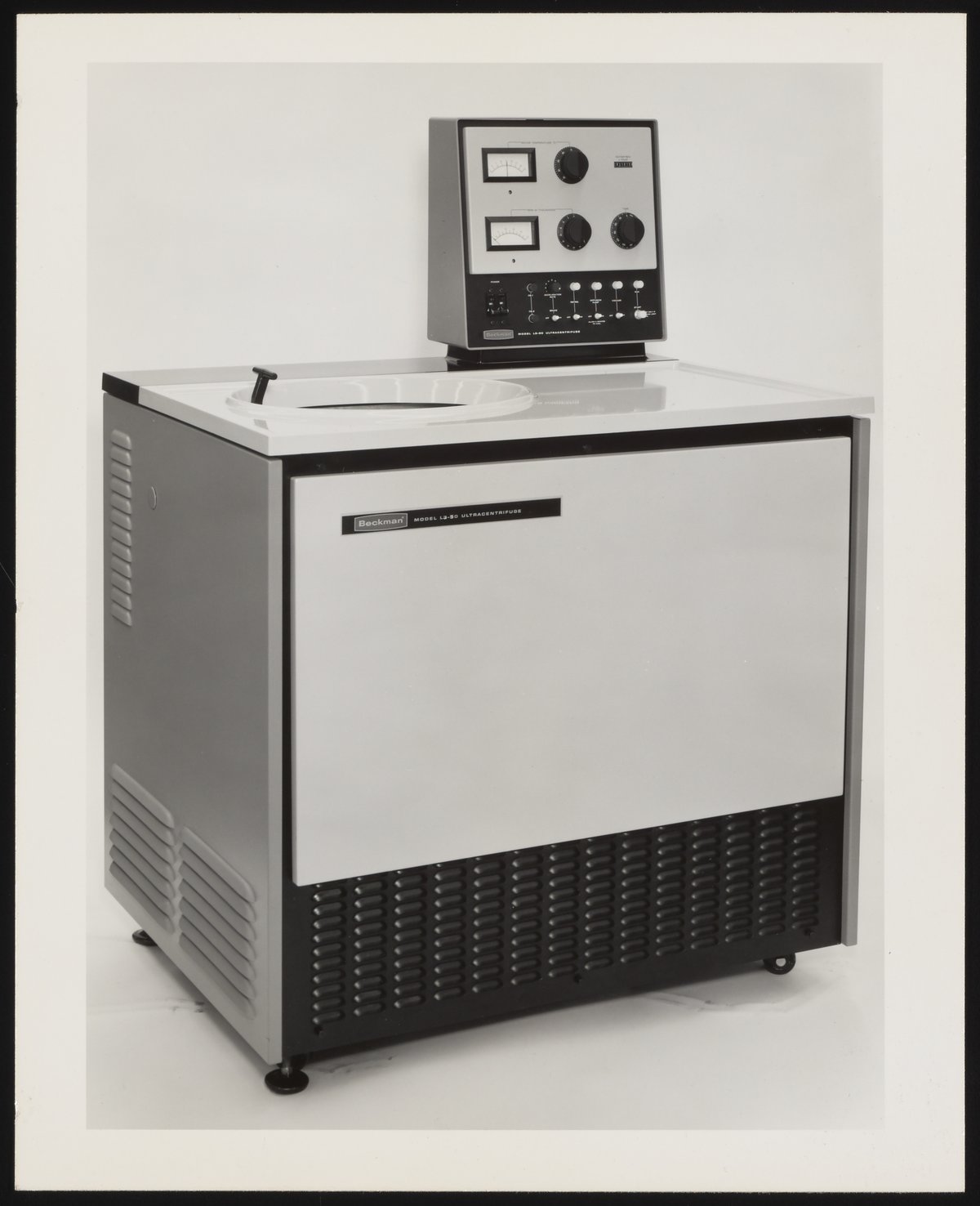 Small JPG1200 x 1436px — 146 KBFull-sized JPG1308 x 1565px — 167 KBOriginal fileTIFF — 1308 x 1565px — 5.9 MBBeckman Instruments began producing centrifuges after their January 1, 1955 acquisition of industry leader, Specialized Instruments Corporation, or Spinco. With Spinco came the famous Model E Ultracentrifuge, which was developed in 1947 and was used for many important scientific discoveries of the 20th century, like the 1957 CalTech experiment that proved James Watson and Francis Crick’s theory on DNA replication. Centrifuges continue to be produced under the Beckman name as of 2016.