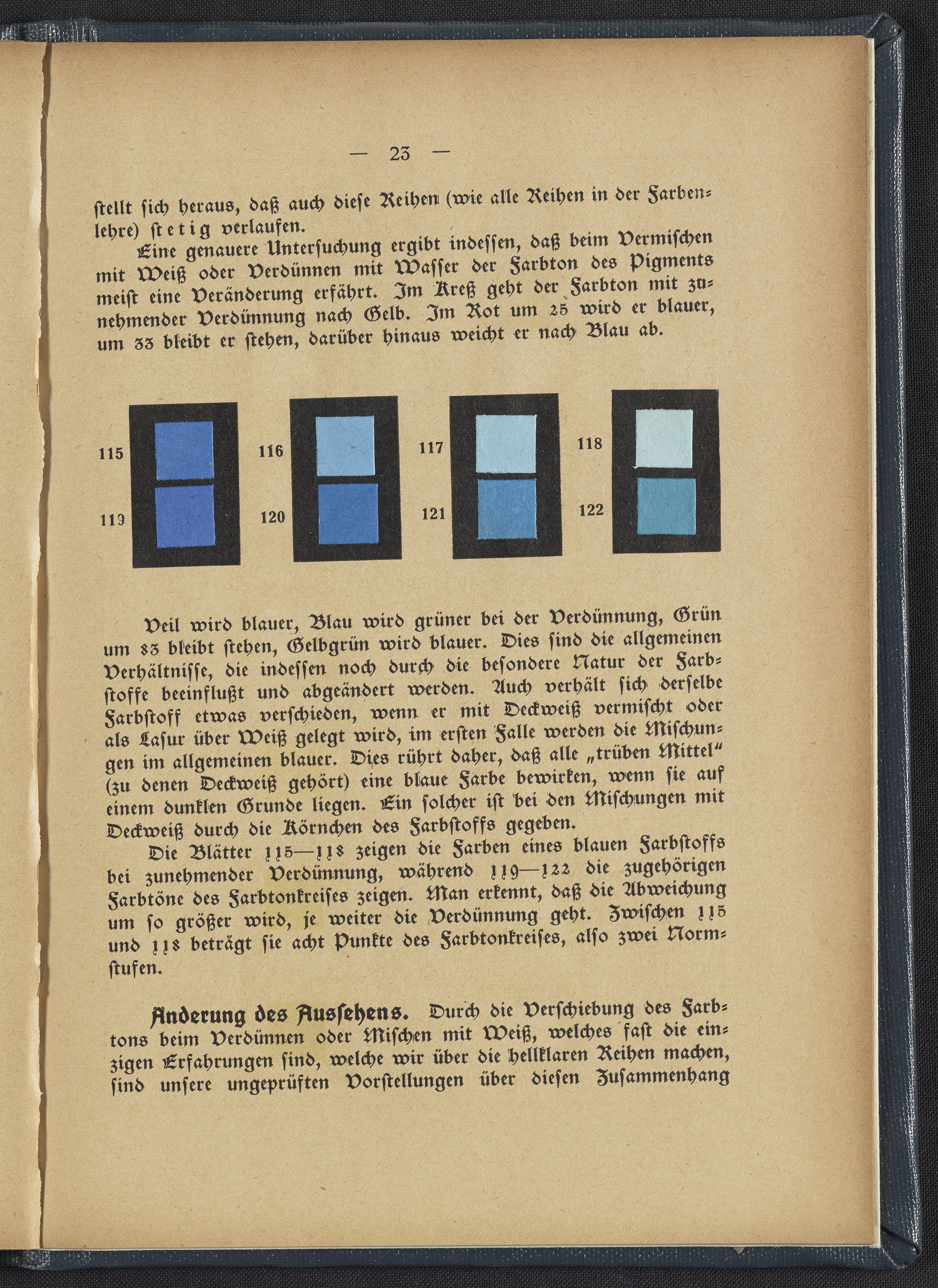 Small JPG1200 x 1648px — 358 KBLarge JPG2880 x 3956px — 2.1 MBFull-sized JPG4134 x 5679px — 4.2 MBOriginal fileTIFF — 4134 x 5679px — 67.2 MBDigitized in entirety, this German color guide features painted color swatches throughout the text. Sections include achromatic and chromatic colors, bright and dark shades, murky colors, as well as color harmony.