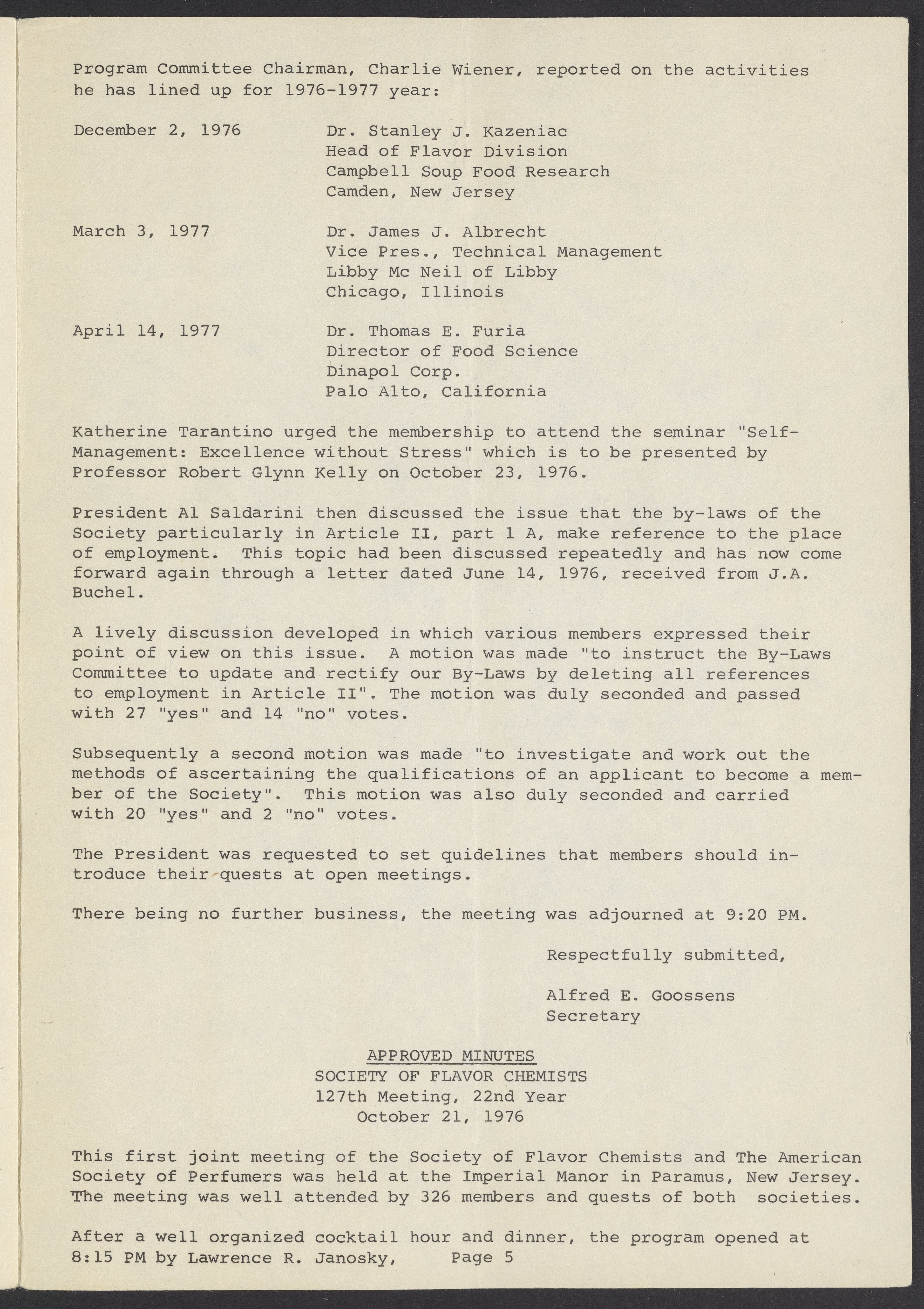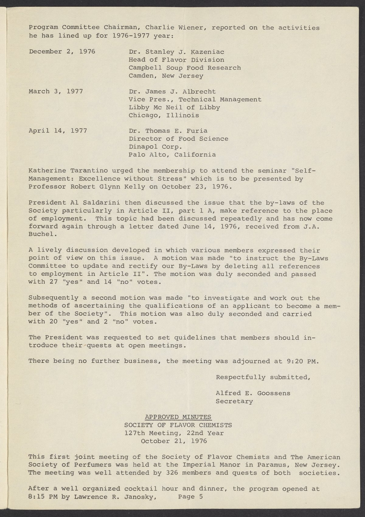 Society of Flavor Chemists. “Society of Flavor Chemists Newsletter, December 1976,” December 1976. Society of Flavor Chemists Newsletters and Certificate of Incorporation, Box 1, Folder 1. Science History Institute. Philadelphia. https://digital.sciencehistory.org/works/3k2x1h1.
