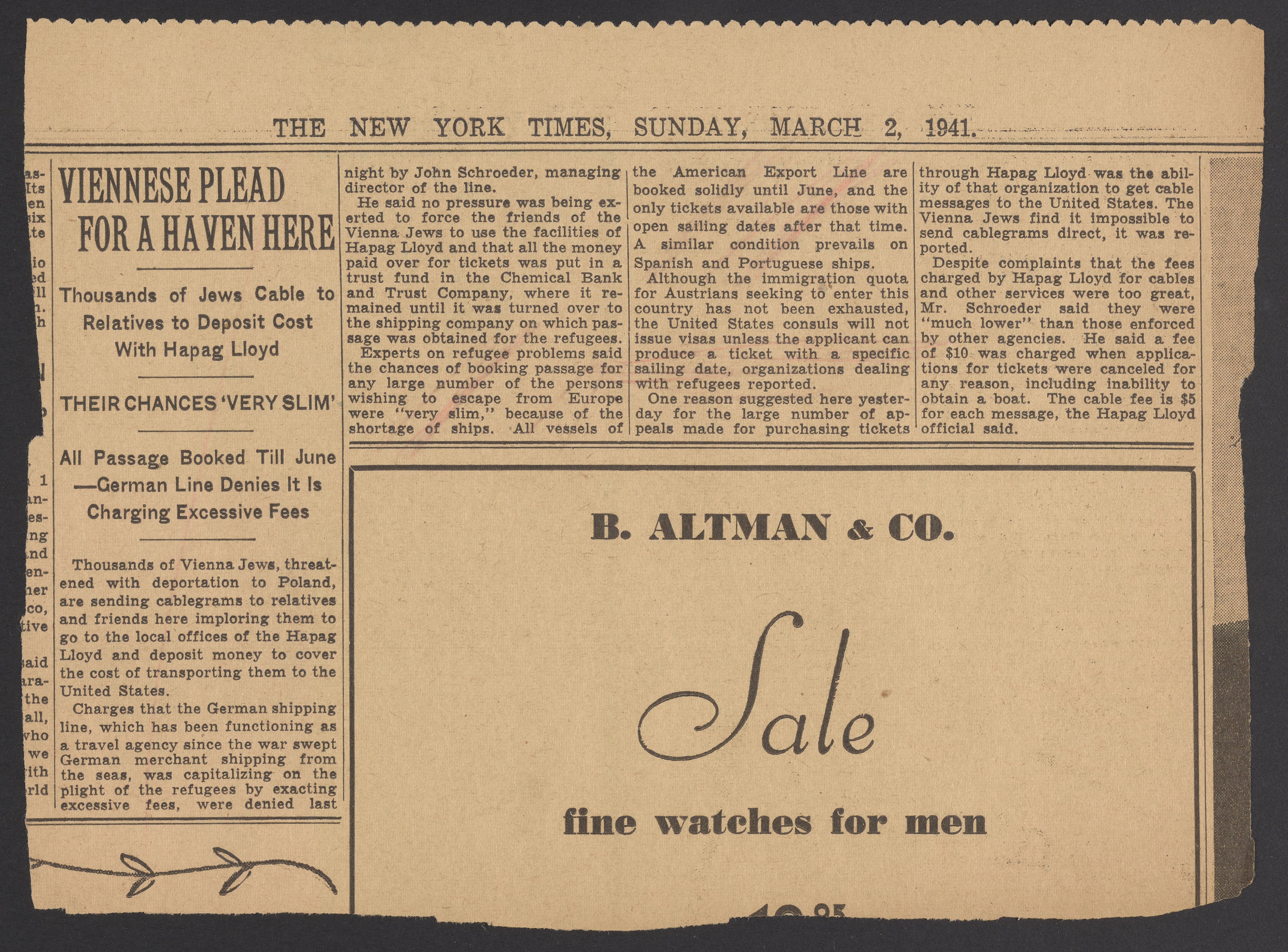 “Viennese Plead for a Haven Here.” New York times, March 2, 1941. Papers of Georg and Max Bredig, Box 10, Folder 24. Science History Institute. Philadelphia. https://digital.sciencehistory.org/works/3ozjv9x.