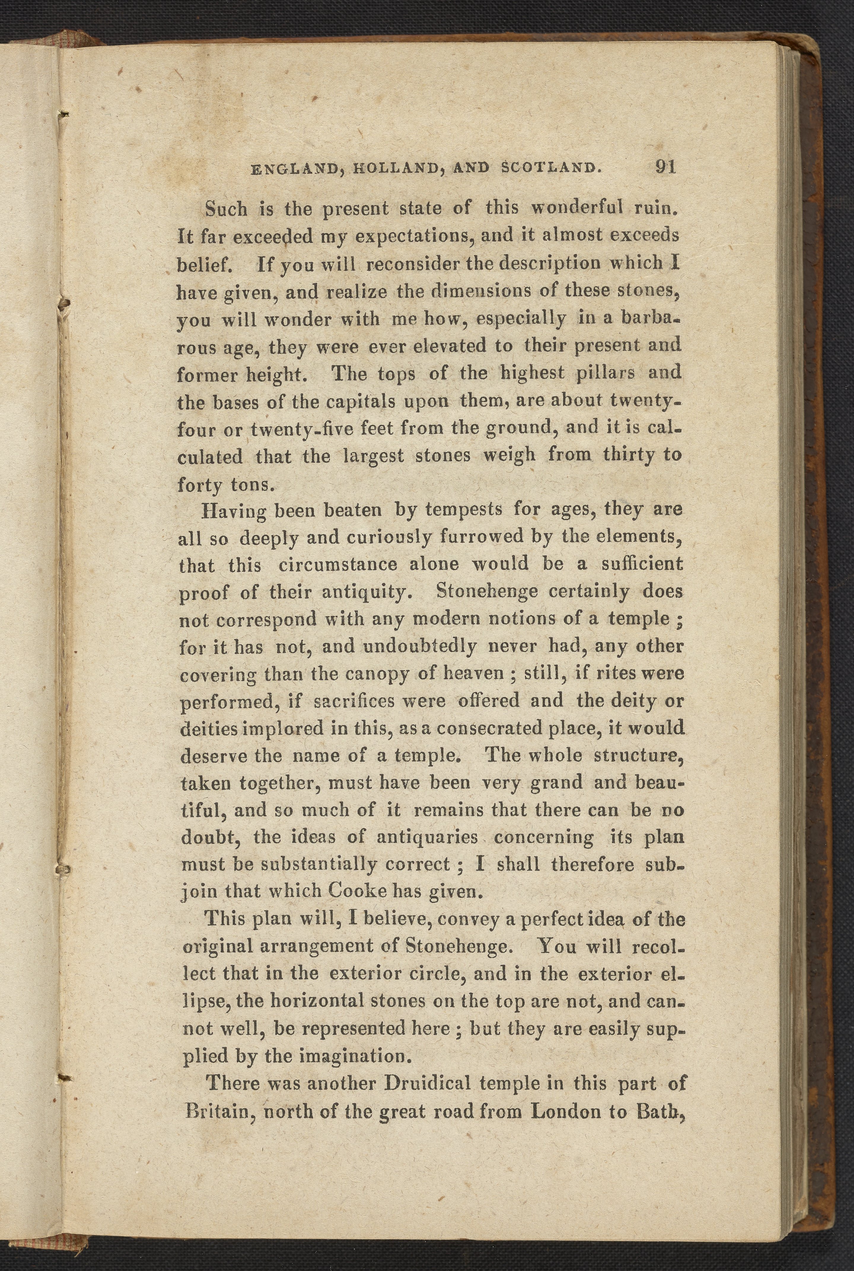 Small JPG1200 x 1787px — 372 KBLarge JPG2880 x 4288px — 2.3 MBFull-sized JPG3076 x 4580px — 2.6 MBOriginal fileTIFF — 3076 x 4580px — 40.4 MBTravel log of Benjamin Silliman (1779-1864) detailing his research in England, Holland, and Scotland. Silliman founded the American Journal of Science and discovered a way to distill petroleum. Written in first-person, this book gives an insight into Silliman's personal feelings and observations about his experiences in several cities and towns across England, Holland, and Scotland, as well as his journey back to the United States. It notably contains several fold-out diagrams of Stonehenge. Select pages have been digitized from this work including the frontismatter and all plates with their corresponding pages.