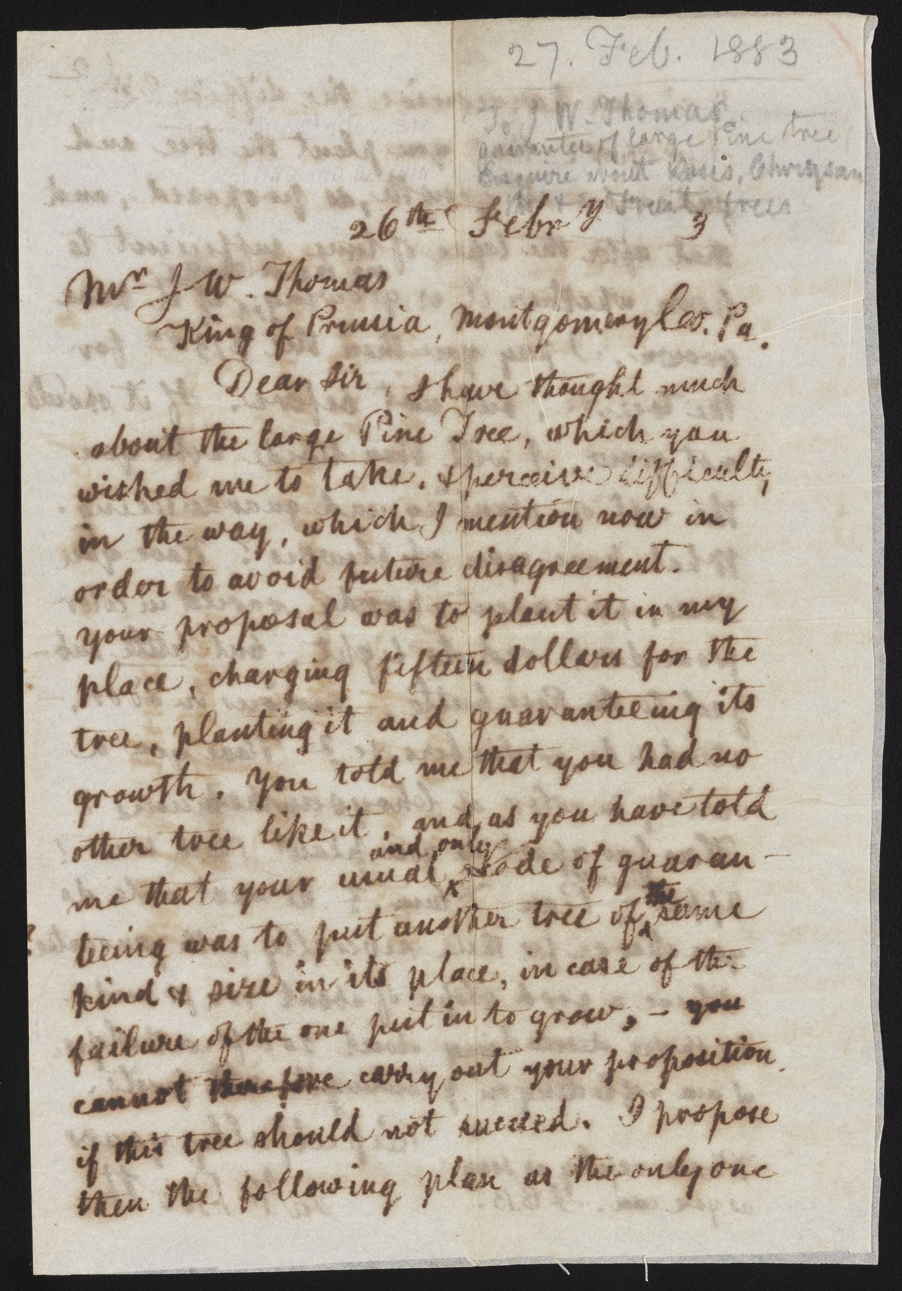 Letter from James Curtis Booth to J.W. Thomas, February 26, 1883