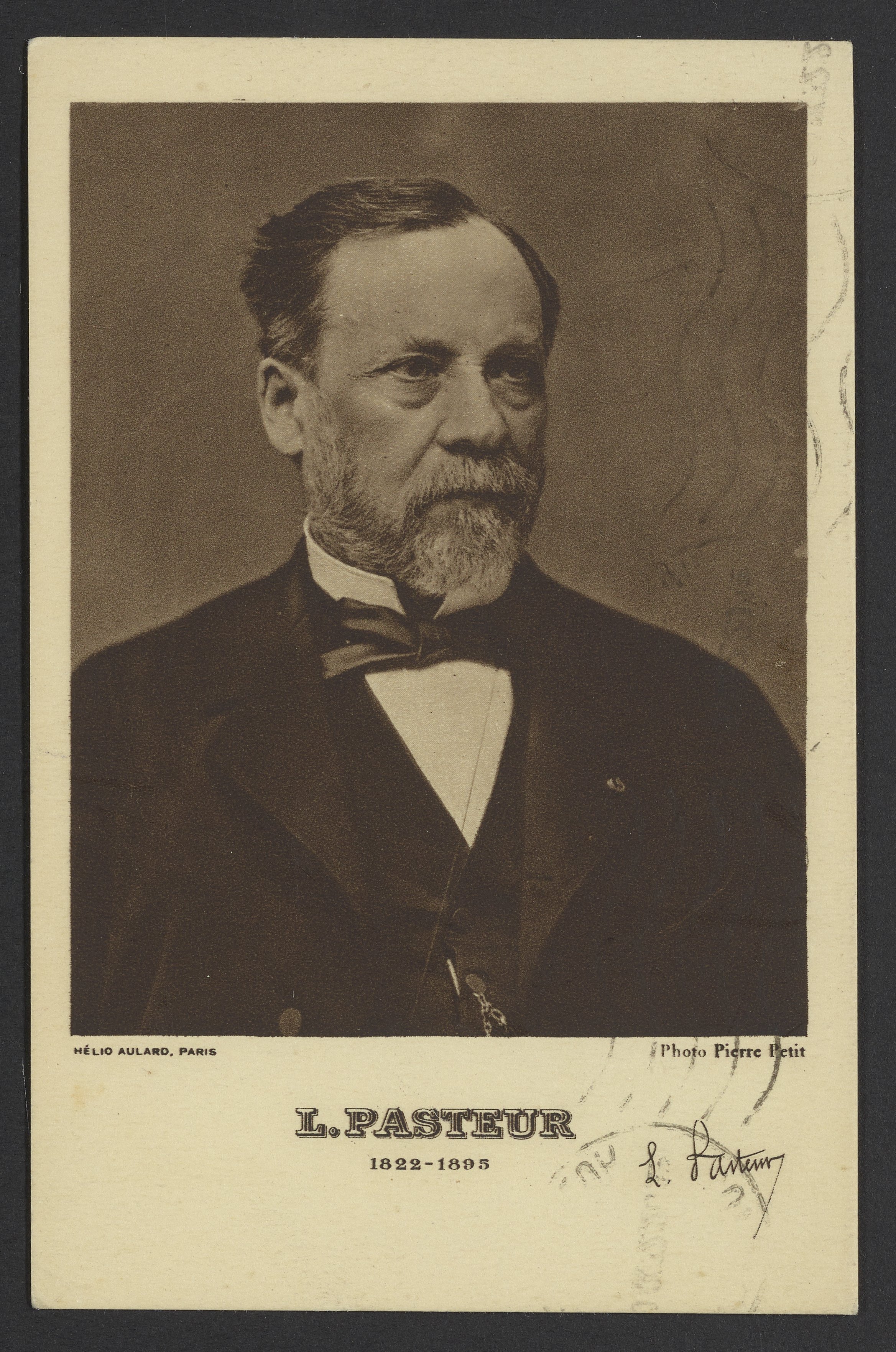 Petit, Pierre Lanith. “Postcard of Louis Pasteur,” September 20, 1932. Papers of Georg and Max Bredig, Box 22. Science History Institute. Philadelphia. https://digital.sciencehistory.org/works/3zmfn06.