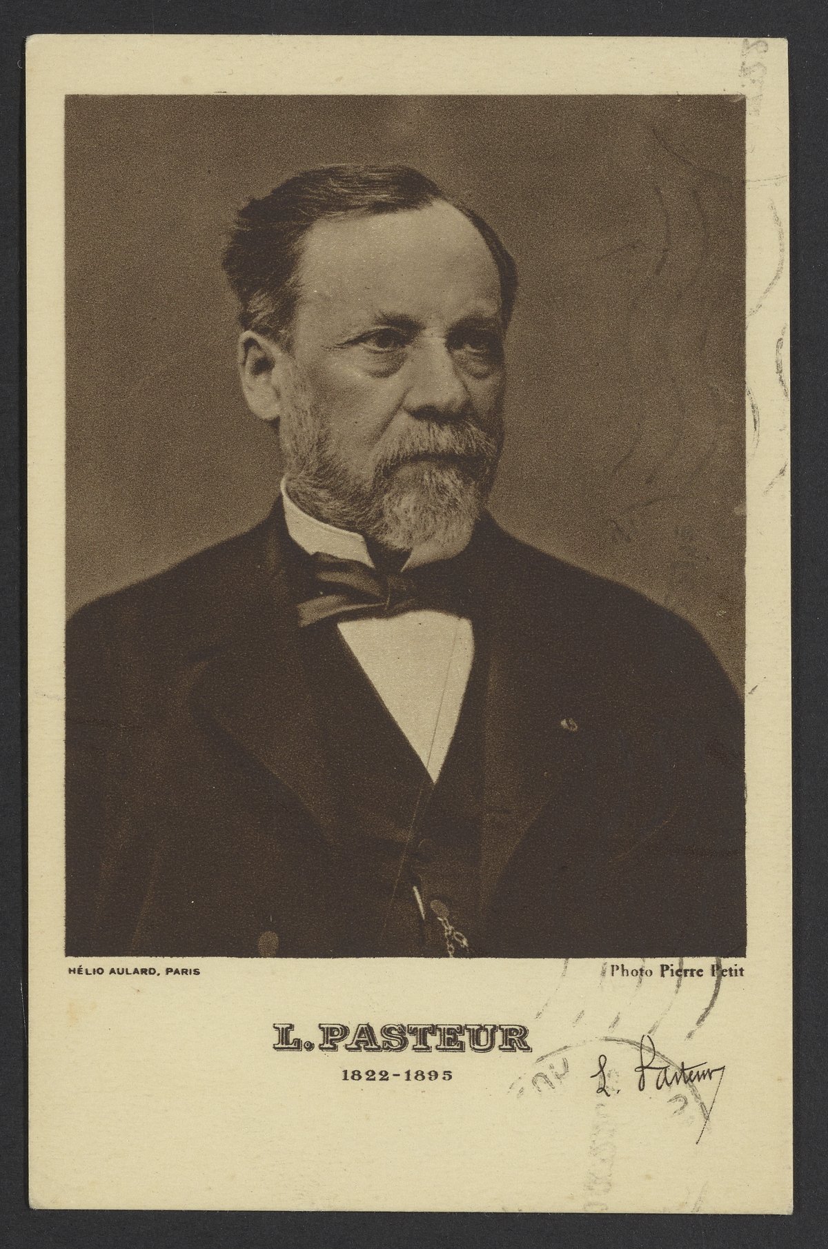 Small JPG1200 x 1810px — 427 KBFull-sized JPG2337 x 3525px — 1.6 MBOriginal fileTIFF — 2337 x 3525px — 23.6 MBPostcard from an unidentified sender with a portrait of Louis Pasteur (1822-1895). Pasteur is credited with discovering the principles of vaccination, microbial fermentation, and pasteurization. His scientific discoveries provided a better understanding of the cause and prevention of diseases.