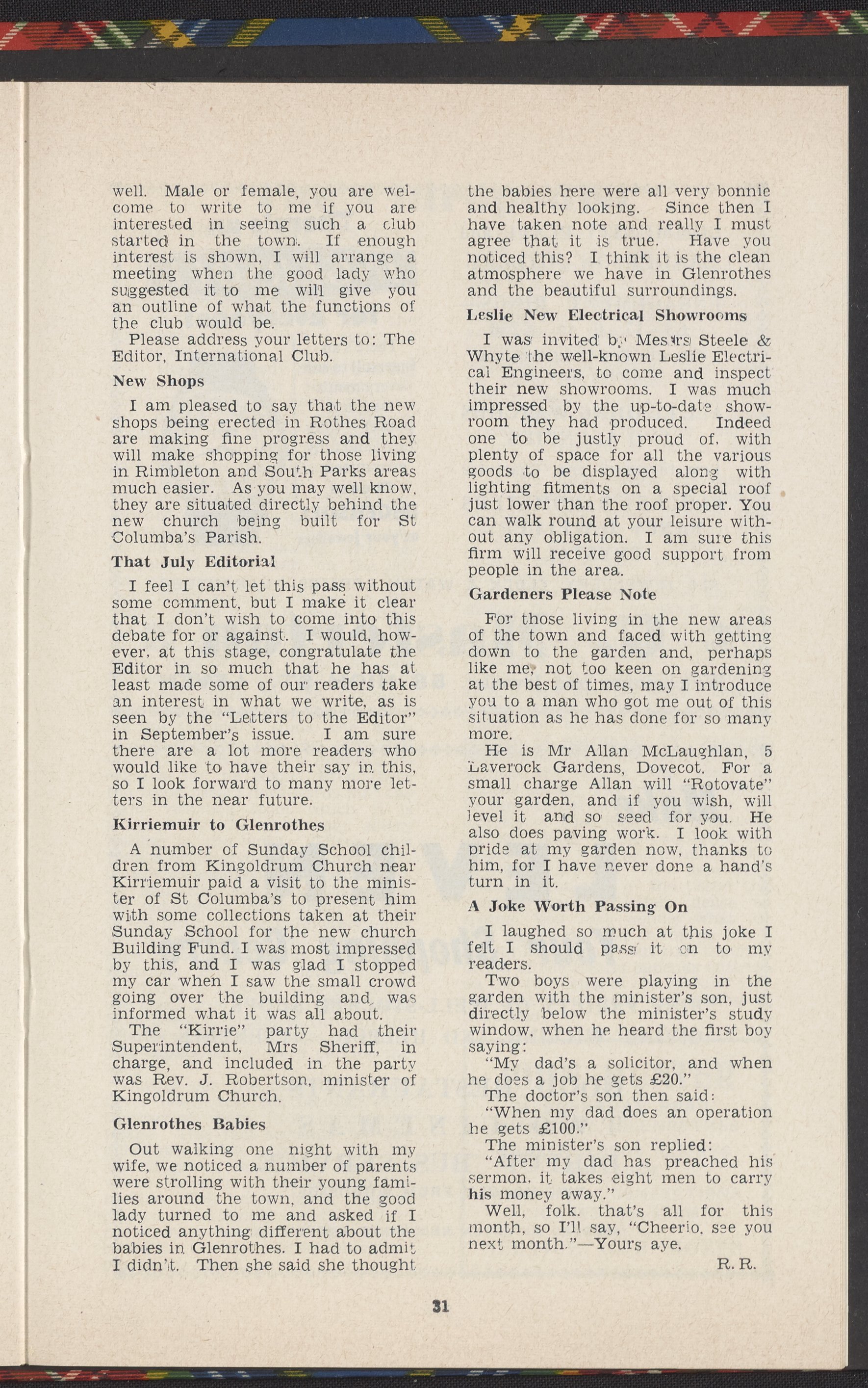 Small JPG1200 x 890px — 157 KBLarge JPG2880 x 2137px — 1.0 MBFull-sized JPG3844 x 2852px — 1.8 MBOriginal fileTIFF — 3844 x 2852px — 31.4 MBThe Glenrothes Bulletin Vol. 6, No. 8, October 1960 includes community news, letters to the editor, opinion pieces, advertisements, and, on page 17, an article about Beckman Instruments, Inc.'s 25th anniversary.