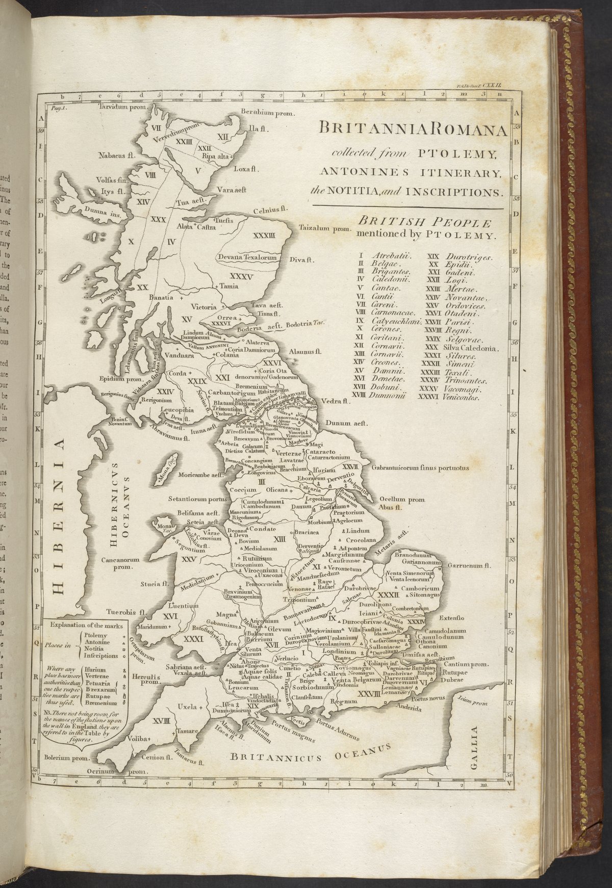 Camden, William. “Britannia Romana Collected from Ptolemy, Antonine's Itinerary, the Notitia, and Inscriptions.” In Britannia: or, a Chorographical Description of the Flourishing Kingdoms of England, Scotland, and Ireland, and the Islands Adjacent, Vol. 1. London, England: John Stockdale, 1806. https://digital.sciencehistory.org/works/468amdr.