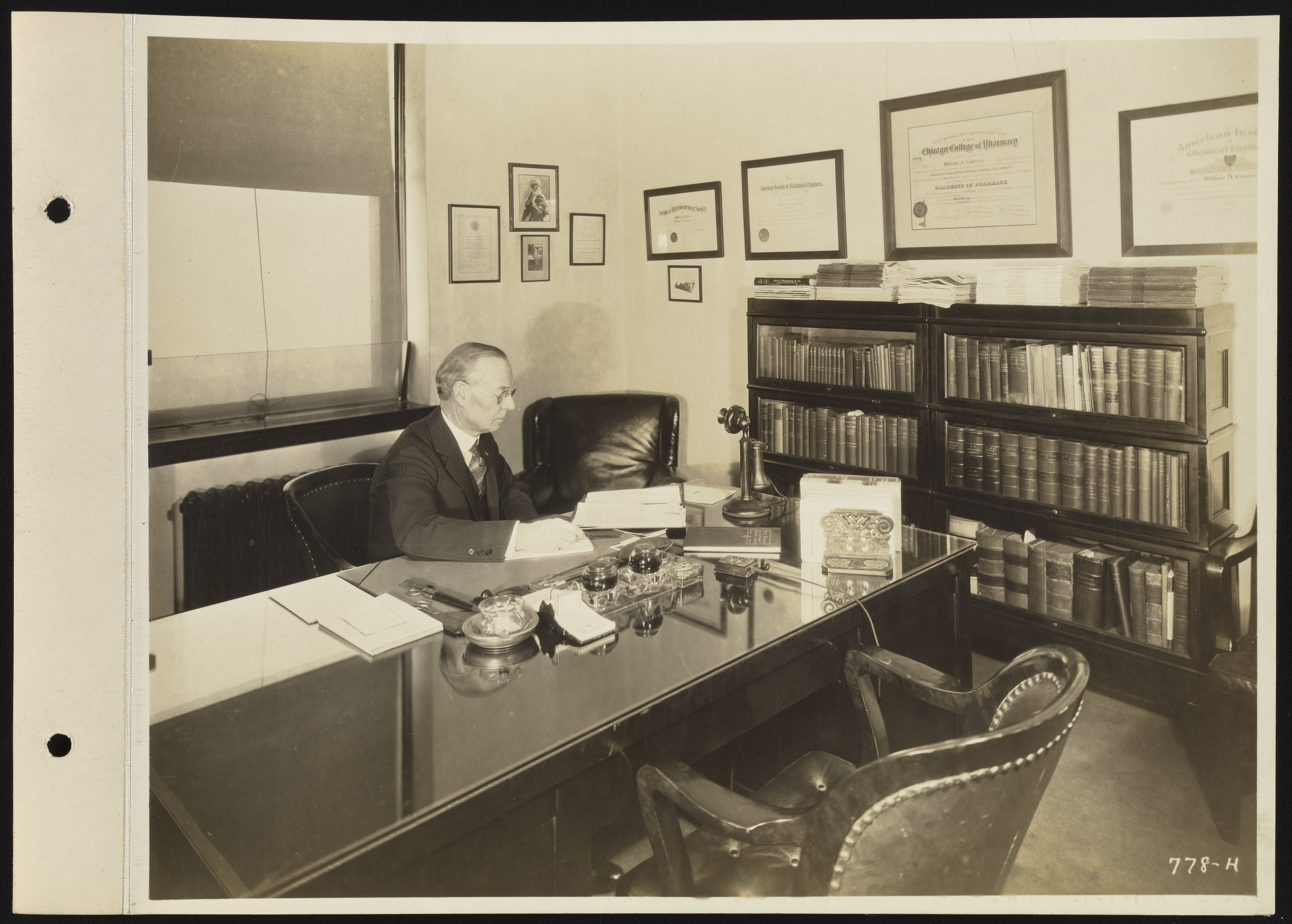 Dearborn Chemical Company. “William A. Converse at Dearborn Chemical Company Office,” 1927–1928. BetzDearborn, Incorporated Records, Box 17, Folder 16. Science History Institute. Philadelphia. https://digital.sciencehistory.org/works/47429b09d.