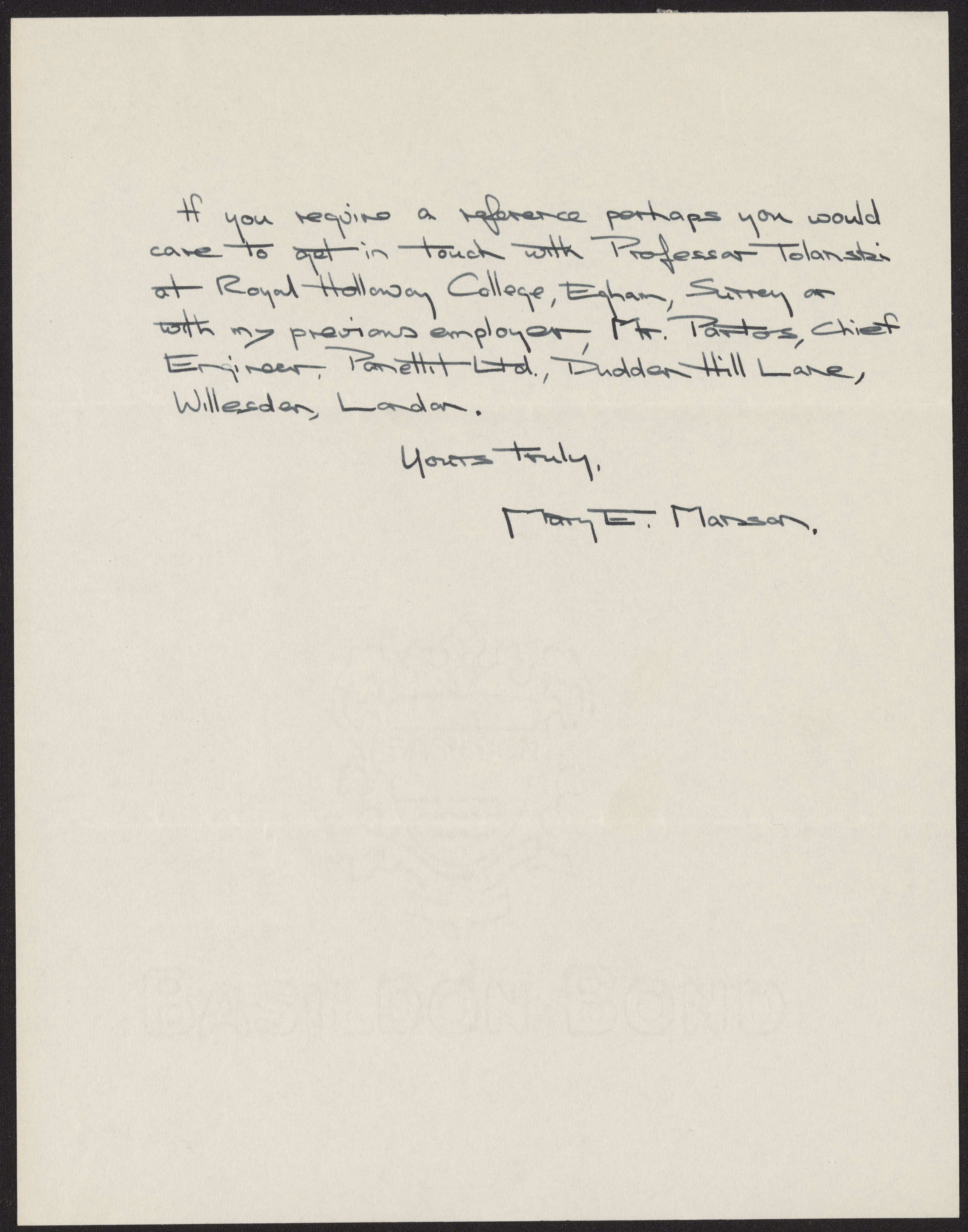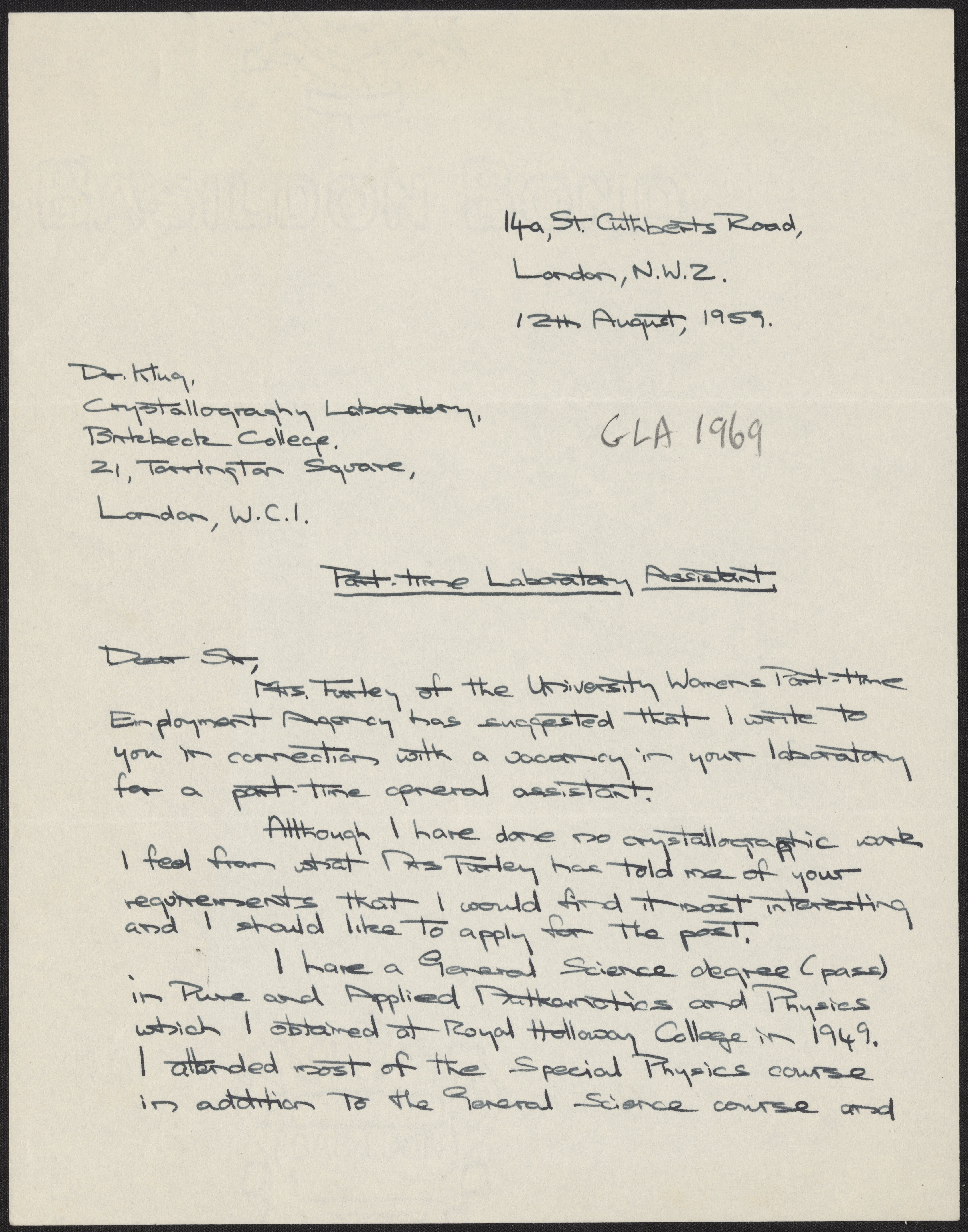 Letter from Mary E. Manson to Aaron Klug, August 12, 1959