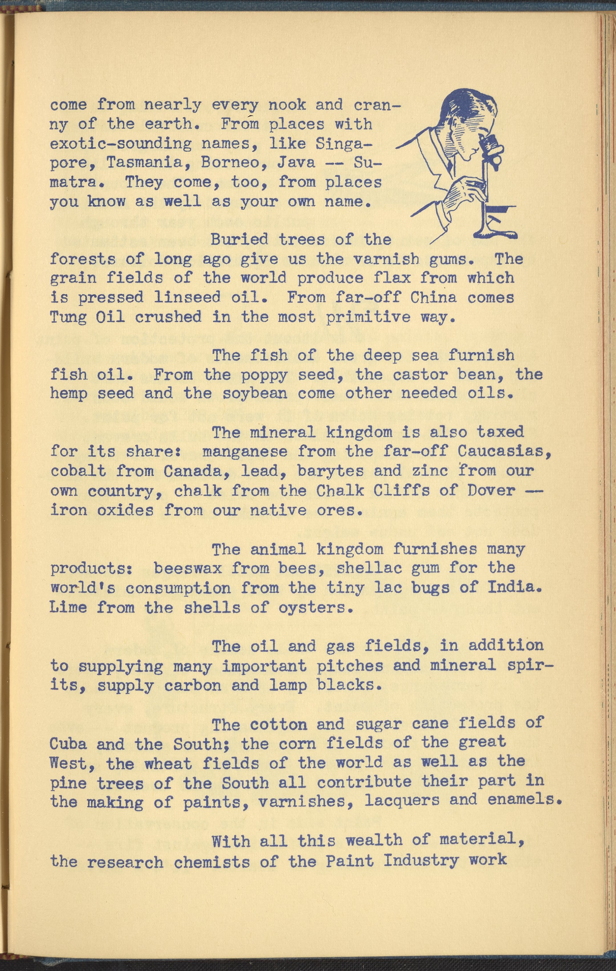 National Paint, Varnish. “The Paint Story.” Pamphlets Corresponding to Radio Shows Produced by the National Paint, Varnish and Lacquer Association. Washington (D.C.), 1940–1949. TP935 .K46. Science History Institute. Philadelphia. https://digital.sciencehistory.org/works/4atk9nu.