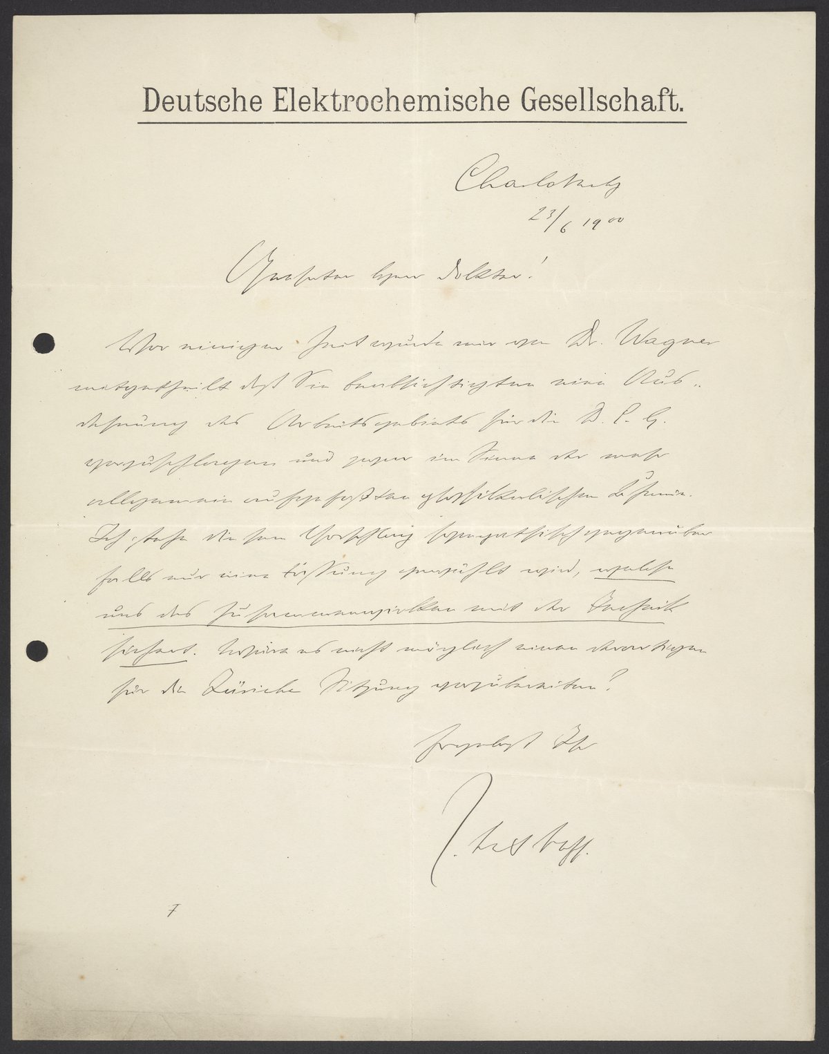 Small JPG1200 x 1526px — 186 KBLarge JPG2880 x 3662px — 1.0 MBFull-sized JPG5220 x 6637px — 3.2 MBOriginal fileTIFF — 5220 x 6637px — 99 MBJacobus van't Hoff (1852-1911) shares his opinion regarding a proposal for the German Physics Society written by Georg Bredig (1868-1944).