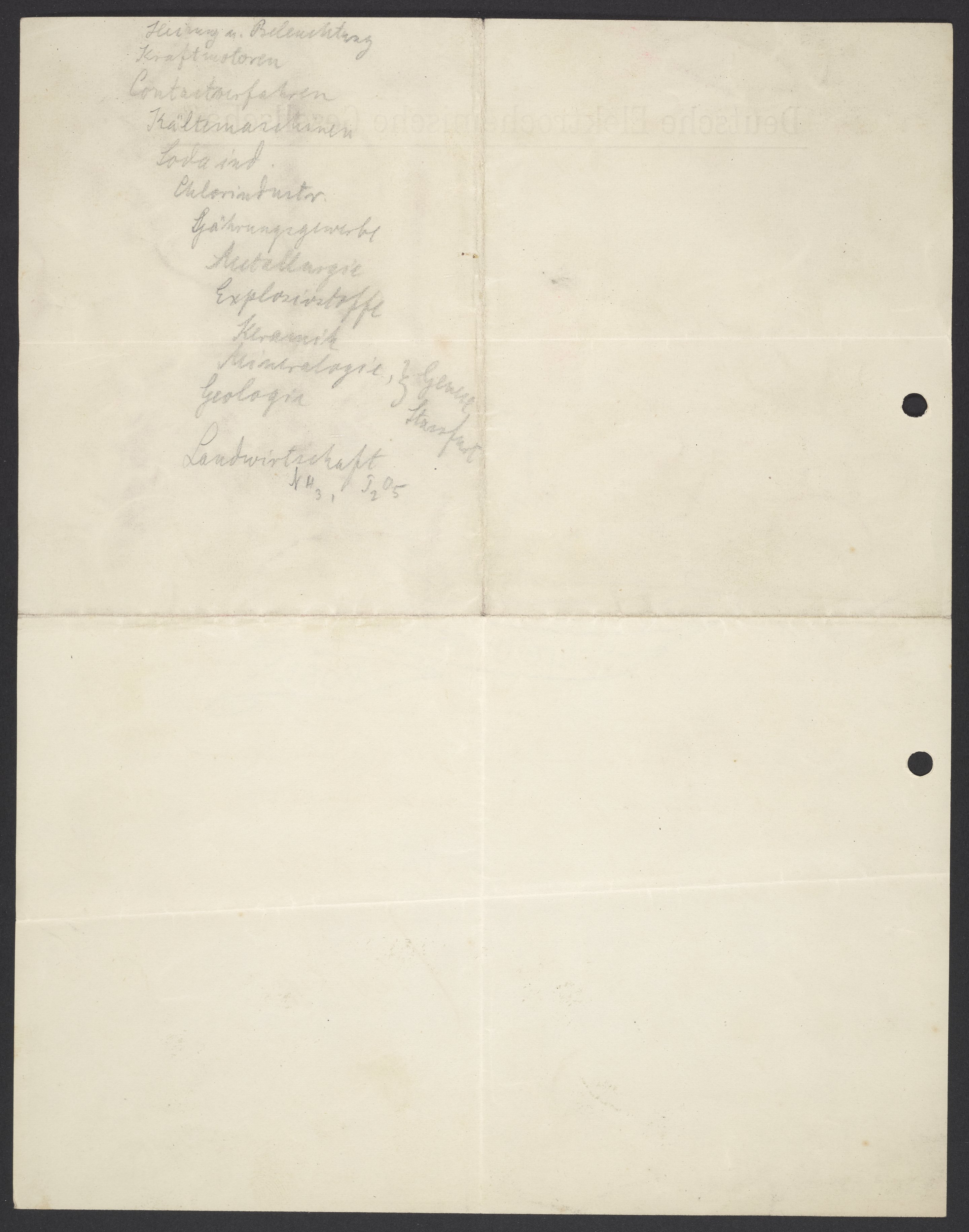 Vor eigner Zeit wurde mir von Dr. Wagner mitgetheilt daß Sie beabsichtigten eine Ausdehnung des Arbeitsgebiets für die D. P. G. vorzuschlagen und zwar im Sinne der mehr allgemein aufgefaßten physikalischen Chemie. Ich stehe diesem Vorschlag skepthisch gegenüber falls nur eine Lösung gewählt wird, welche uns das Zusammenwirken mit der Technik sichert. Wäre es nicht möglich einen derartigen für die Züricher Sitzung vorzubereiten?