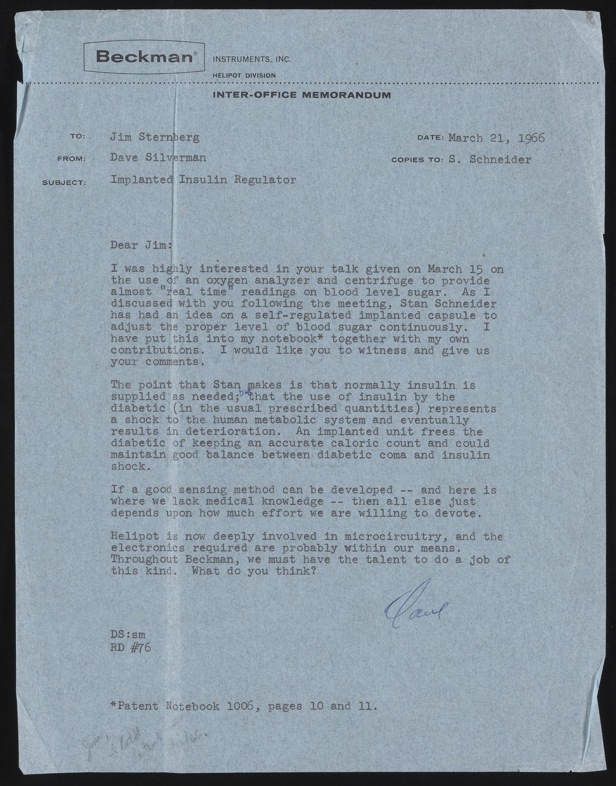 Letter from David Silverman to James C. Sternberg