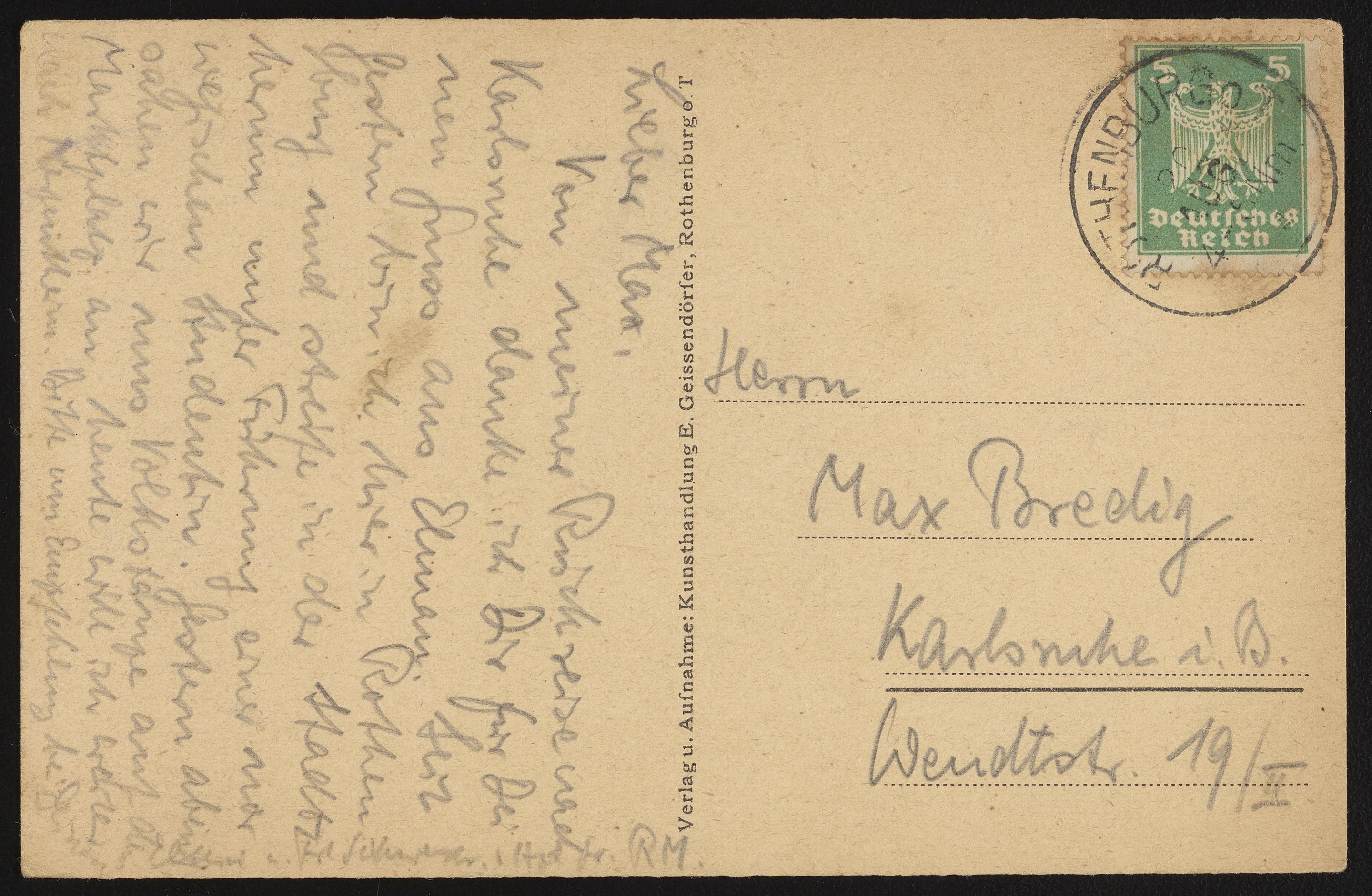 Postcard from Rothenburg, Germany to Max Bredig