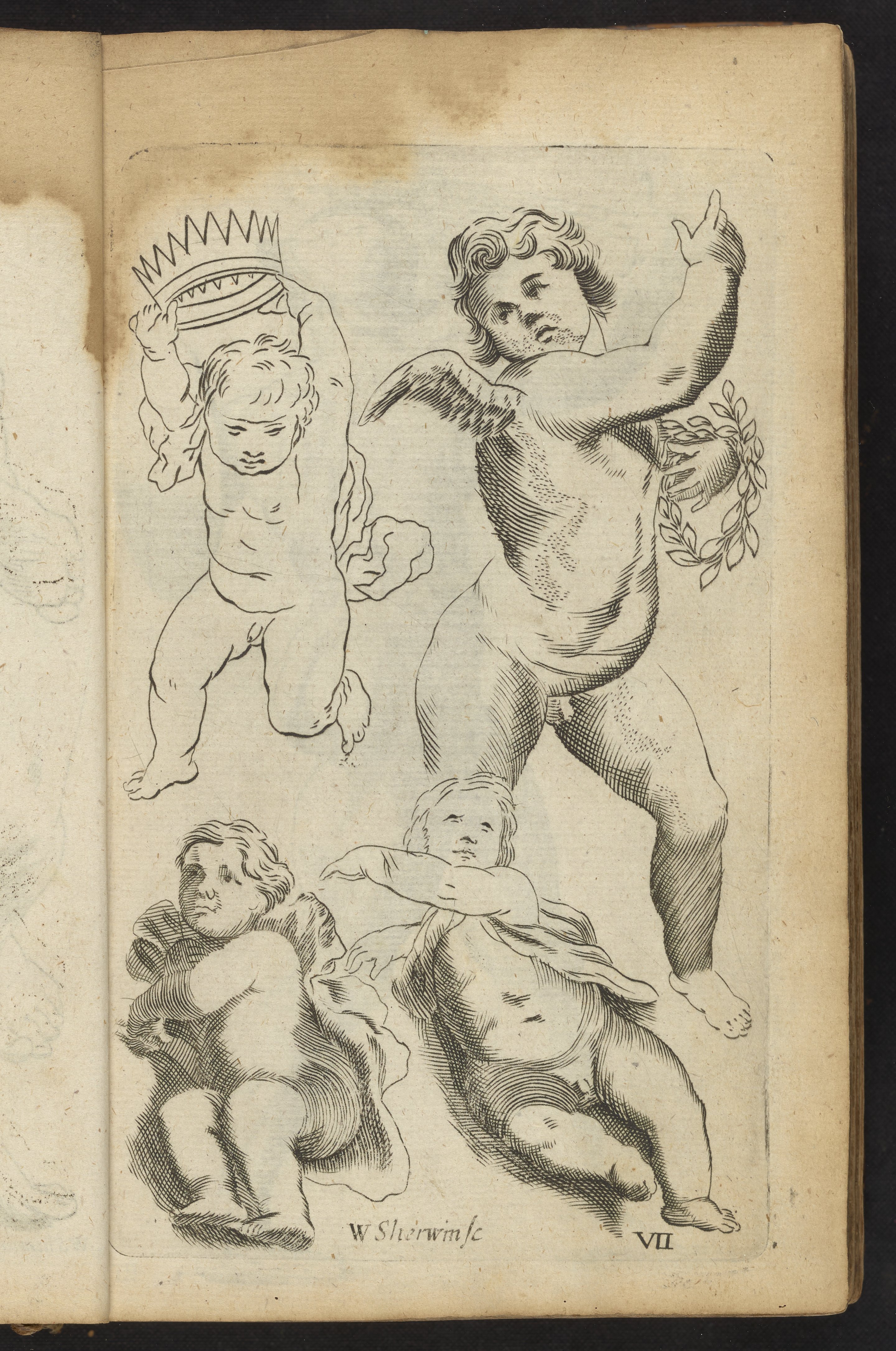 Salmon, William. “Plate VII: Artist Study of Babies and Cherub.” In Polygraphice, or, the Arts of Drawing, Engraving, Etching, Limning, Painting, Washing, Varnishing, Gilding, Colouring, Dying, Beautifying and Perfuming. London, England: Printed for Thomas Passinger at the Three Bibles on London Bridge and Thomas Sawbridge at the Three Flower de Luces in Little-Brittain, 1685. https://digital.sciencehistory.org/works/4f16c410x.