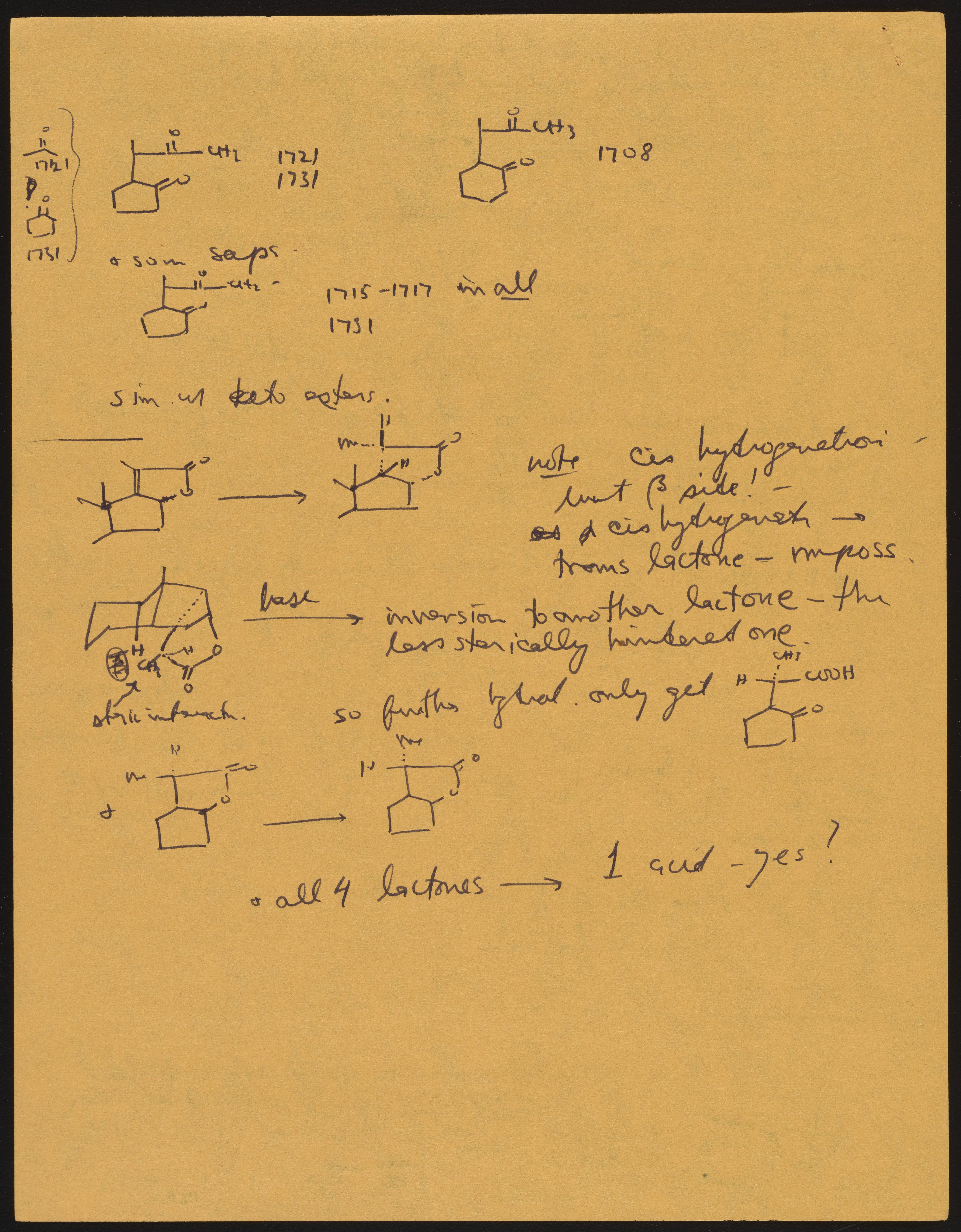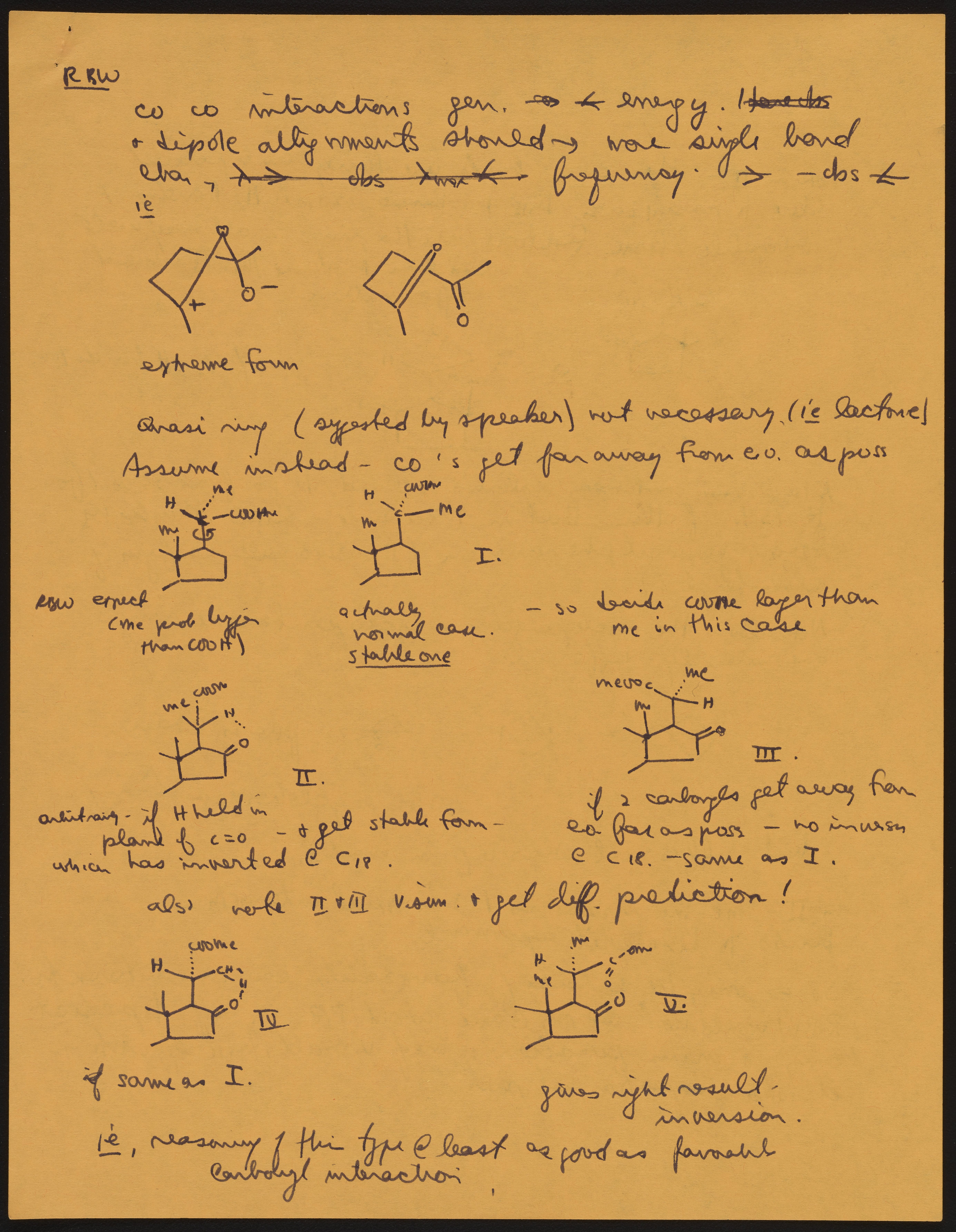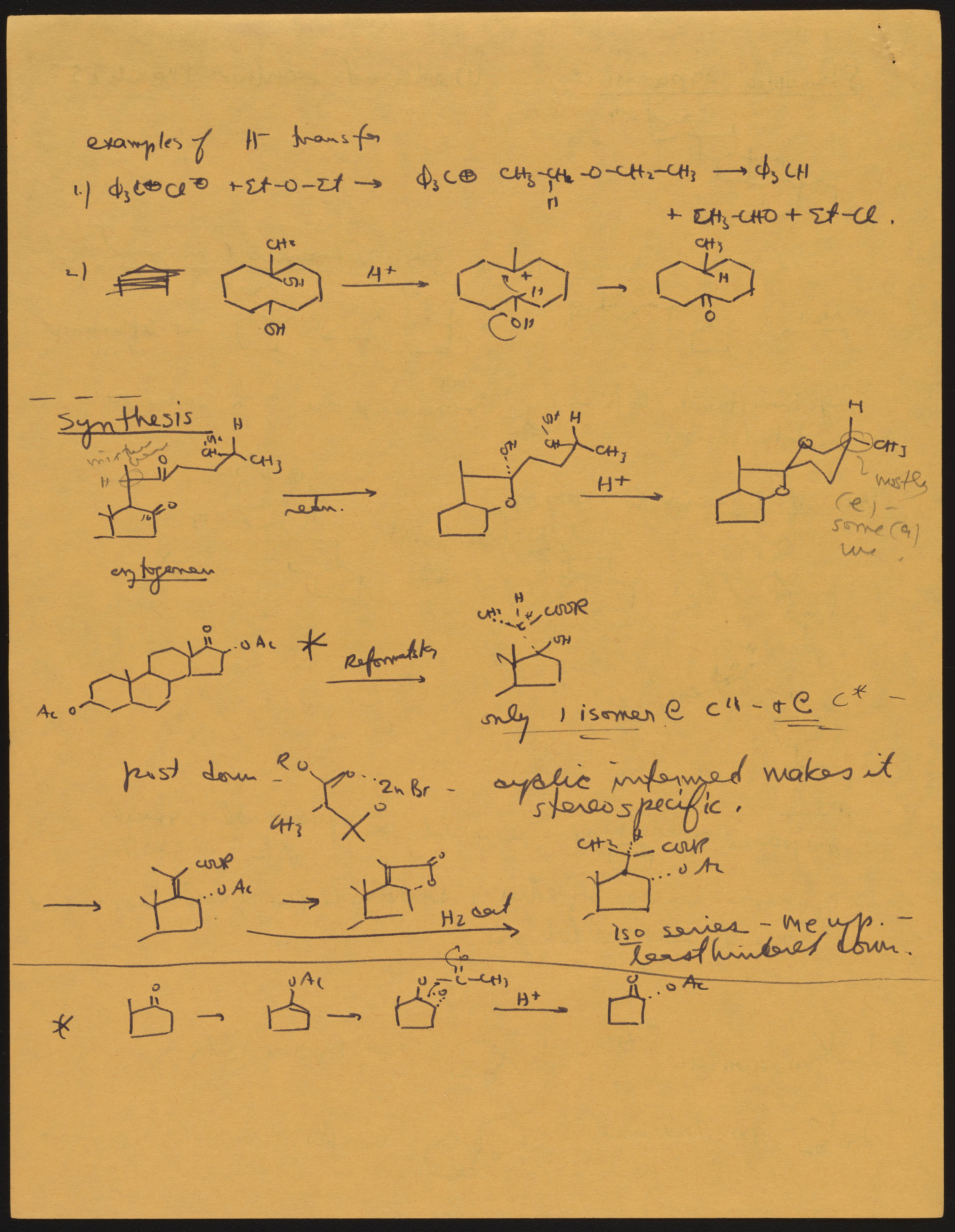 Kohler, Robert E. “R. B. (Robert Burns) Woodward Seminar Entitled ‘Steroidal Sapogenins.’” Notes from R. B. (Robert Burns) Woodward's Seminars, circa 1959–1966. Folder 2. Science History Institute. Philadelphia. https://digital.sciencehistory.org/works/4m90dw517.