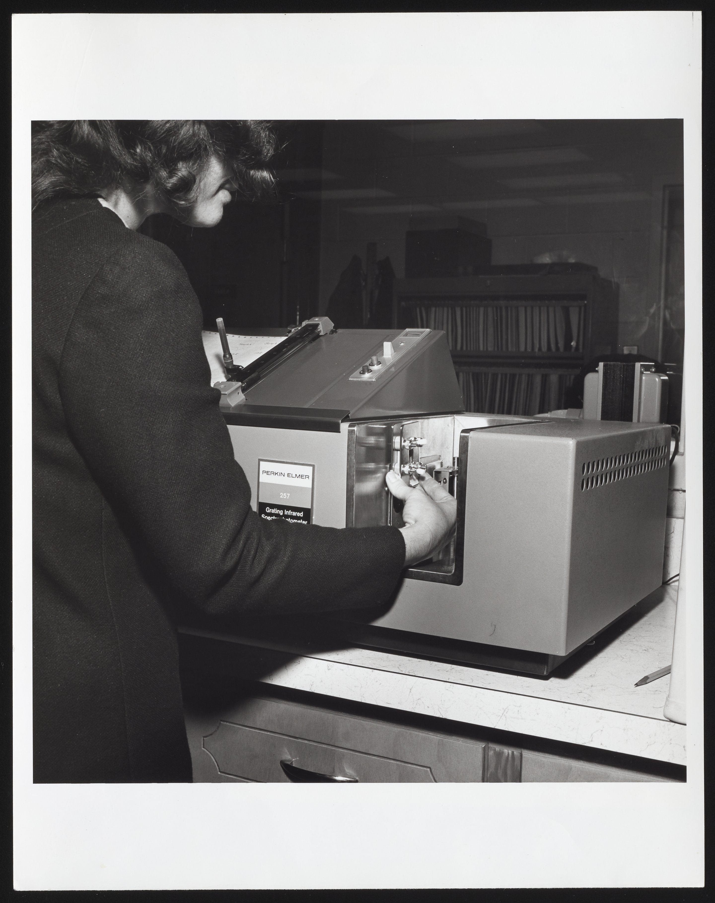 Perkin-Elmer infrared spectrophotometer in use at Macfield Texturizing Company