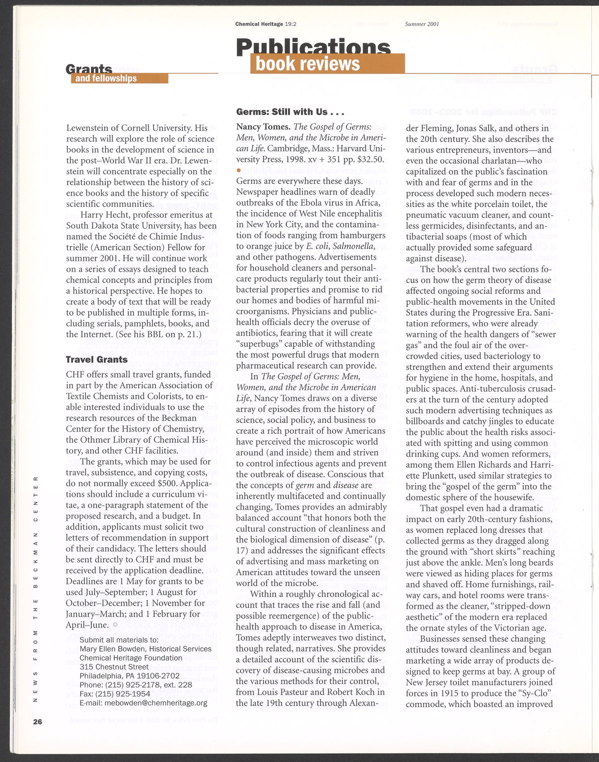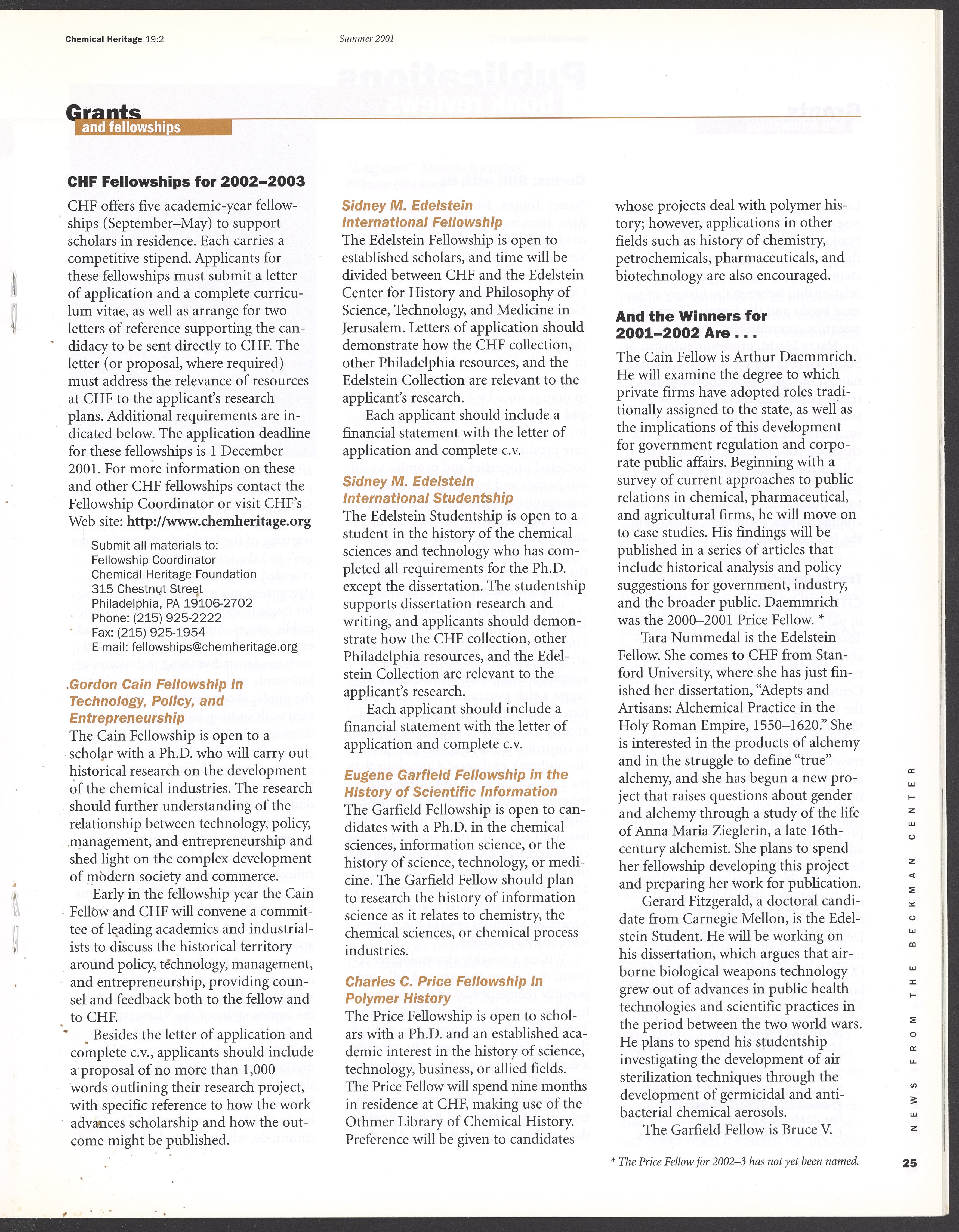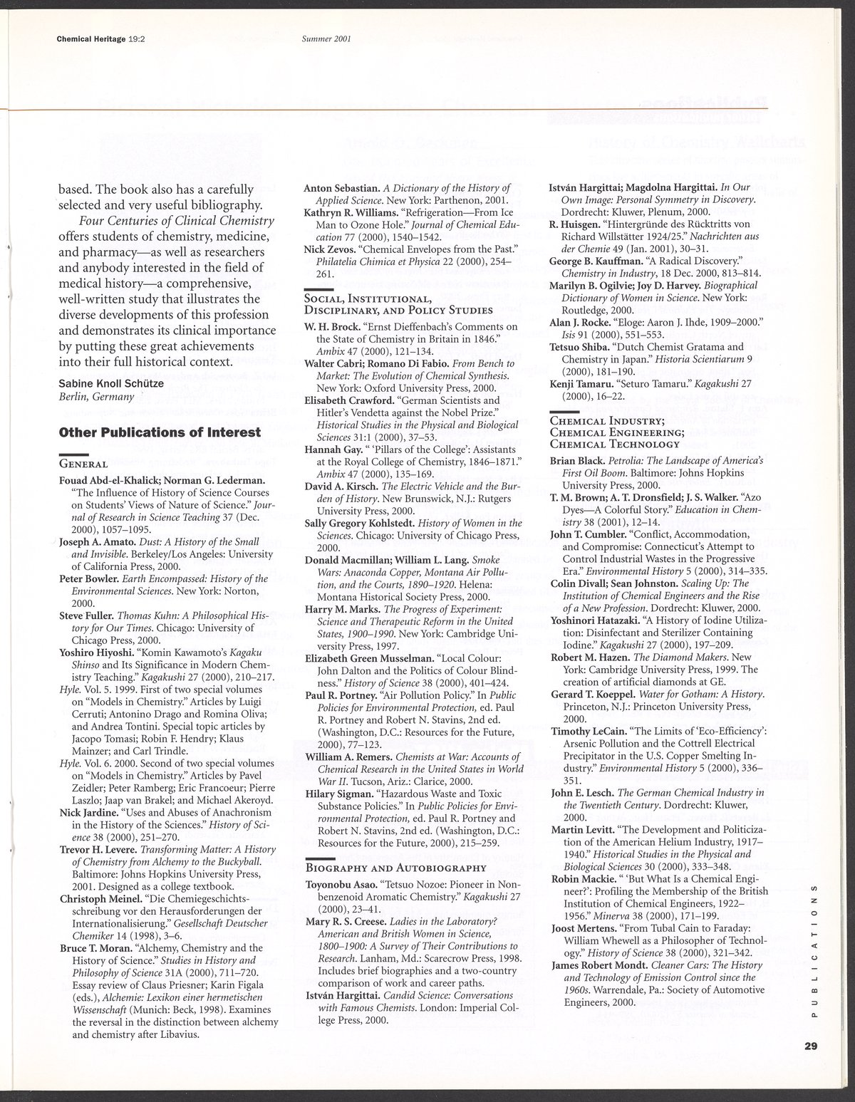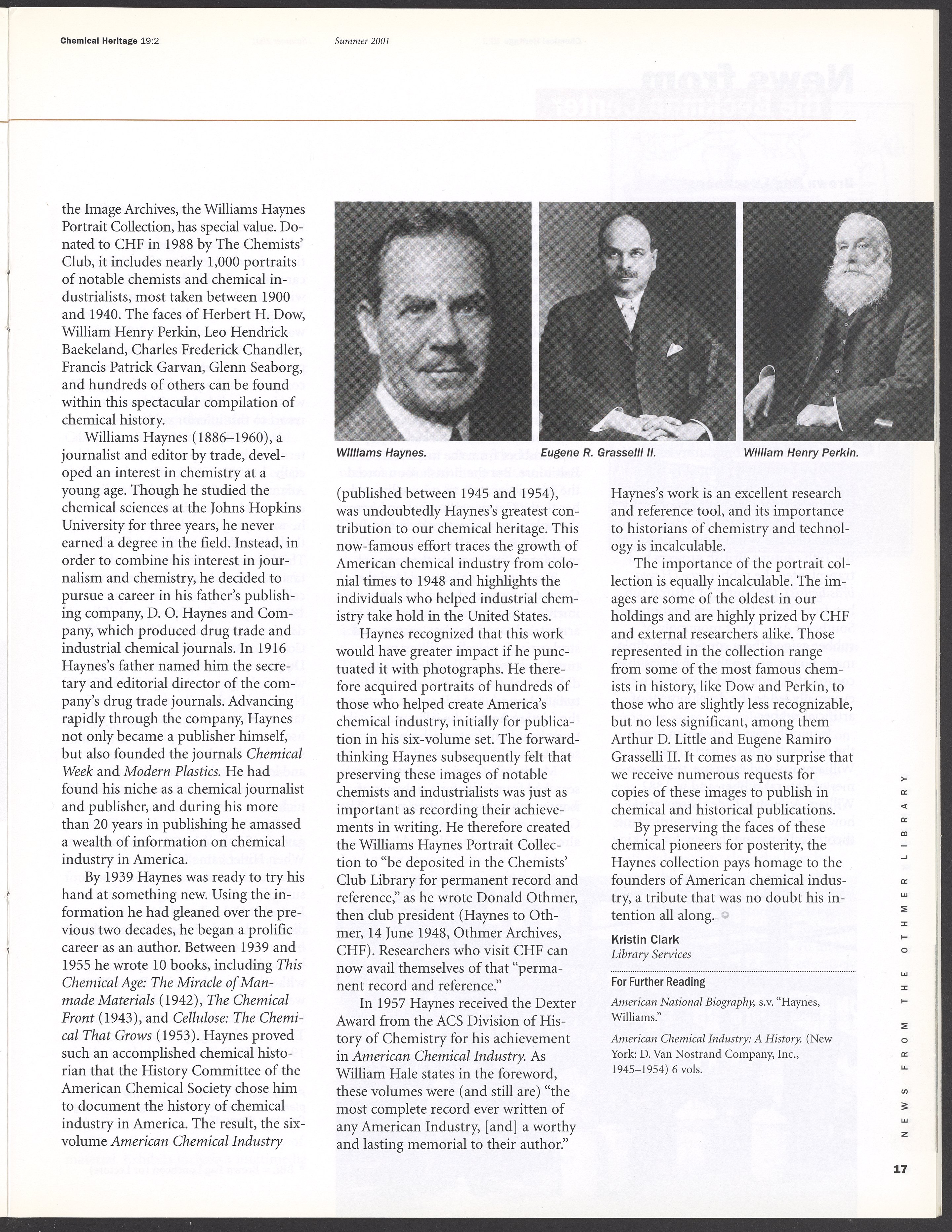 “Chemical Heritage, Volume 19 Number 2.” Philadelphia, Pennsylvania: Chemical Heritage Foundation, 2001. 099C001. Science History Institute. Philadelphia. https://digital.sciencehistory.org/works/4qr25ck.