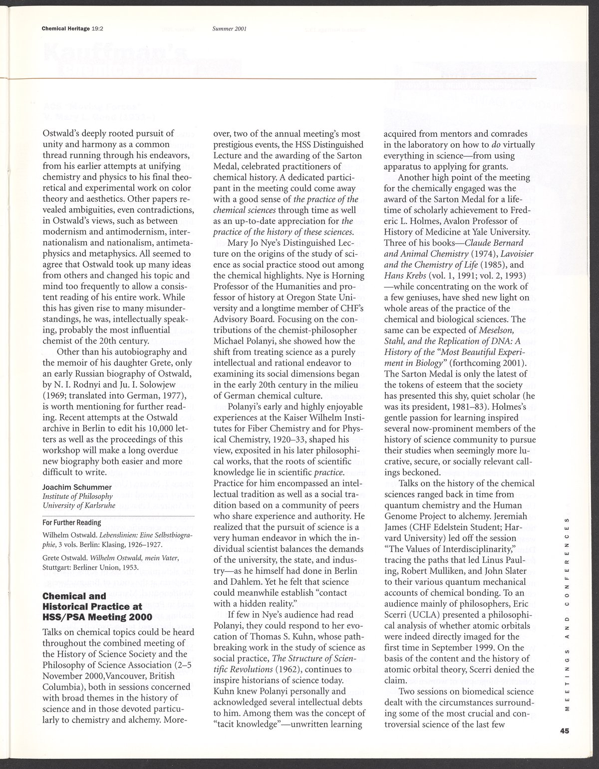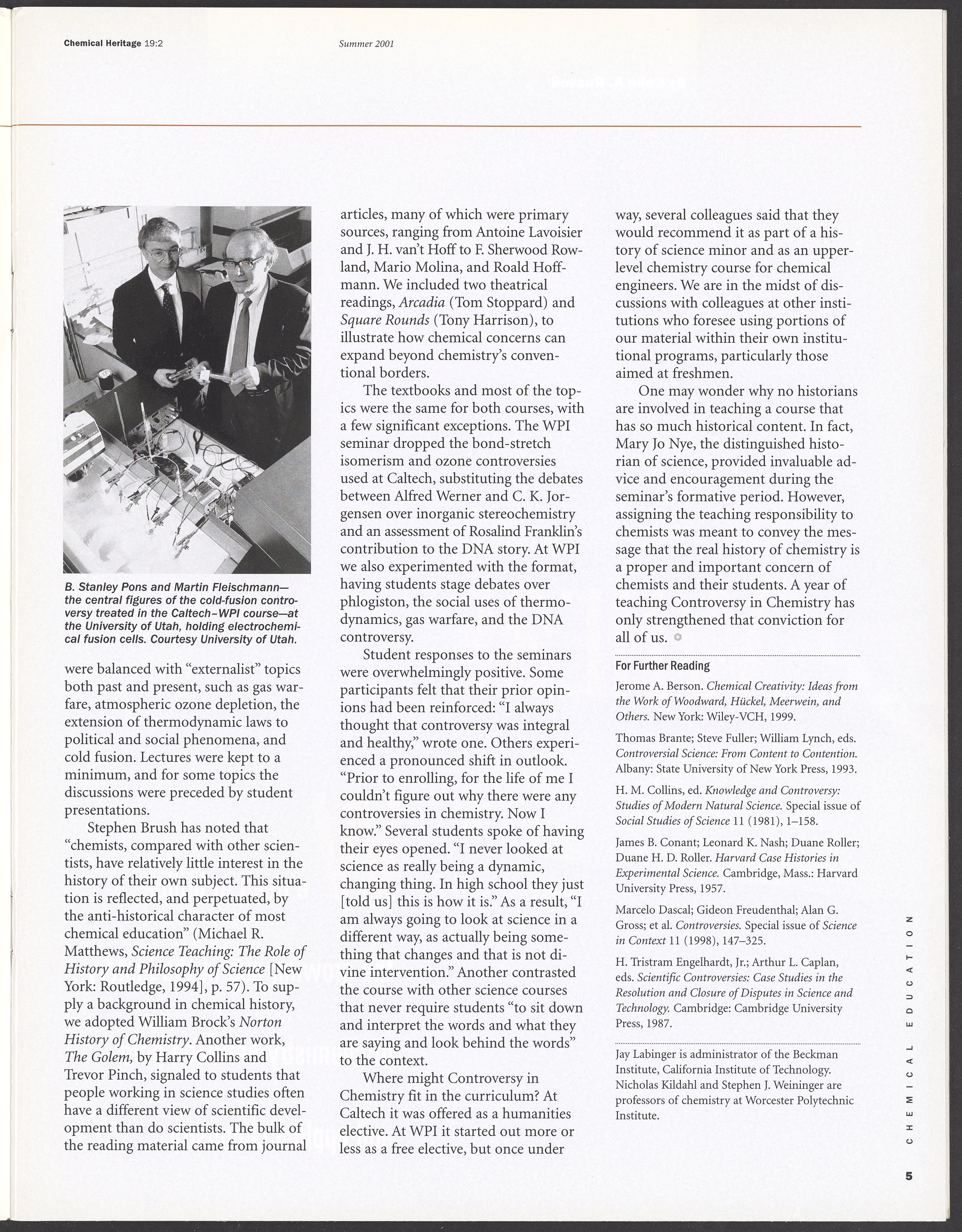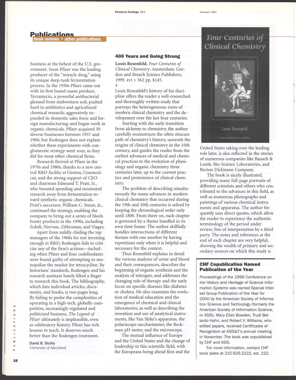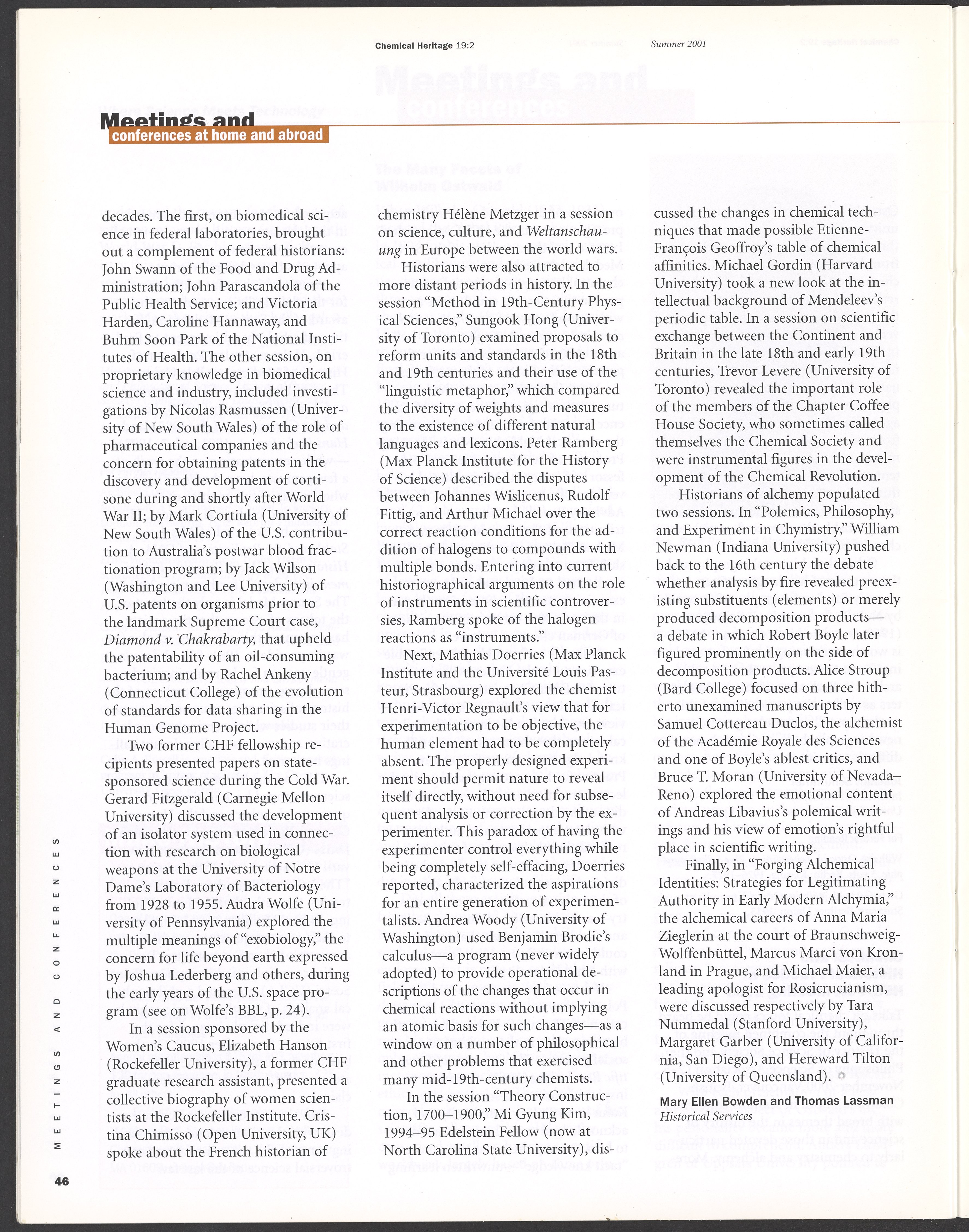 Chemical Heritage, Volume 19 Number 2