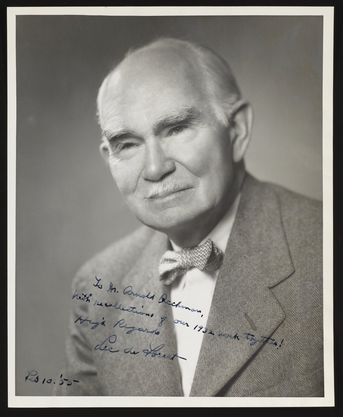 Hessler Studio. “Portrait of Lee De Forest (1873–1961),” February 10, 1955. Beckman Historical Collection, Box 1, Folder 18. Science History Institute. Philadelphia. https://digital.sciencehistory.org/works/4t64gn939.