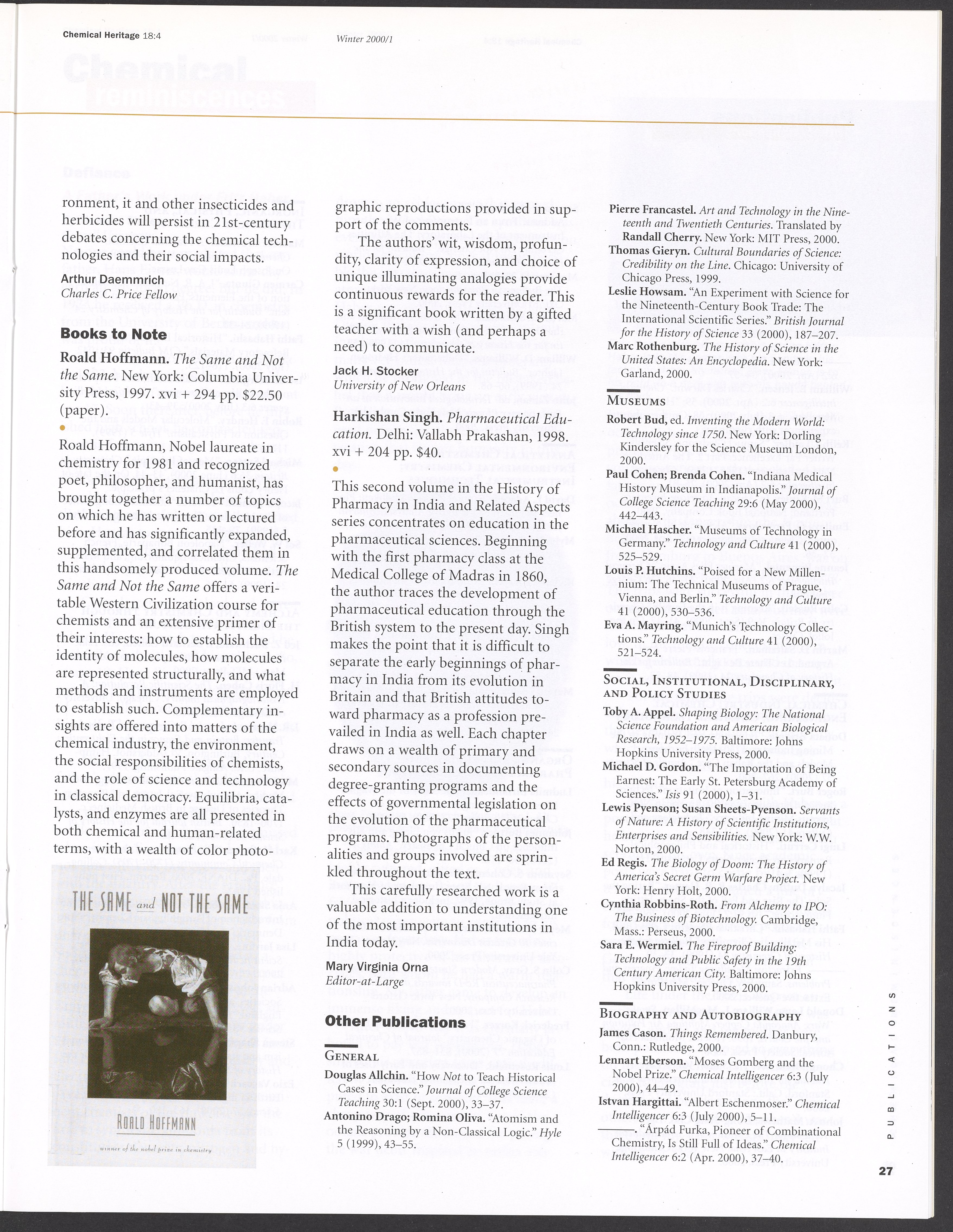 “Chemical Heritage, Volume 18 Number 4.” Philadelphia, Pennsylvania: Chemical Heritage Foundation, 2000. 099C001. Science History Institute. Philadelphia. https://digital.sciencehistory.org/works/4u4qubf.