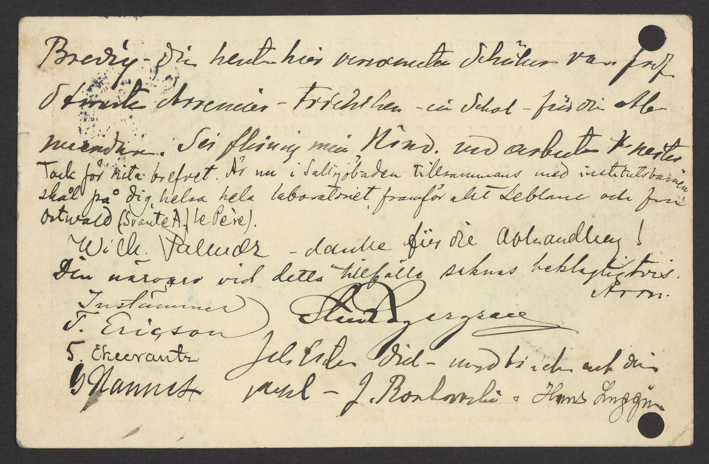 Small JPG1200 x 795px — 204 KBLarge JPG2880 x 1907px — 966 KBFull-sized JPG3534 x 2340px — 1.4 MBOriginal fileTIFF — 3534 x 2340px — 23.7 MBSvante Arrhenius (1859-1927), his students, and other colleagues send their best regards to Georg Bredig (1868-1944) in Leipzig, Germany from Stockholm, Sweden.