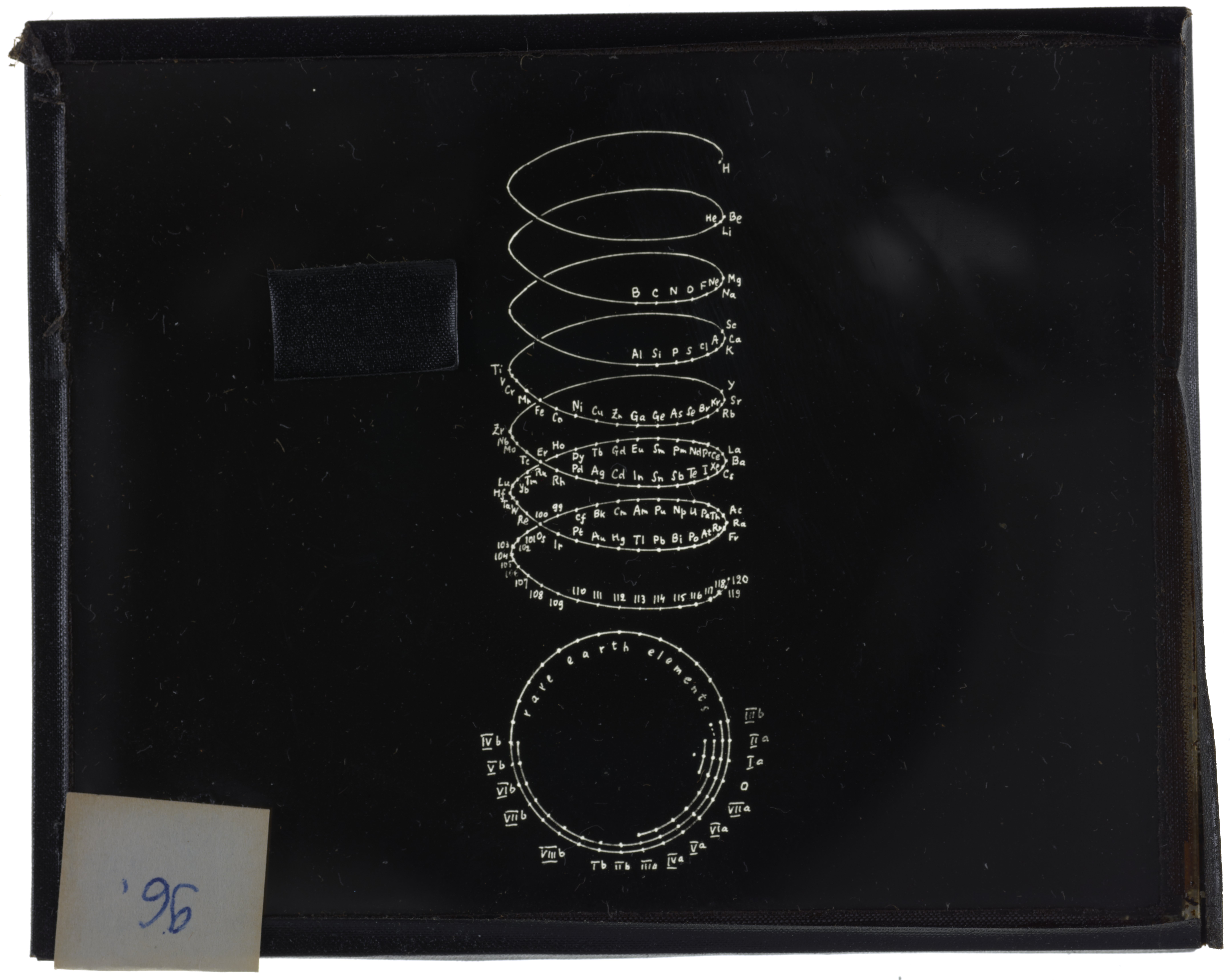 Periodic table in style of helix wound on one cylinder with interrupted short and medium periods