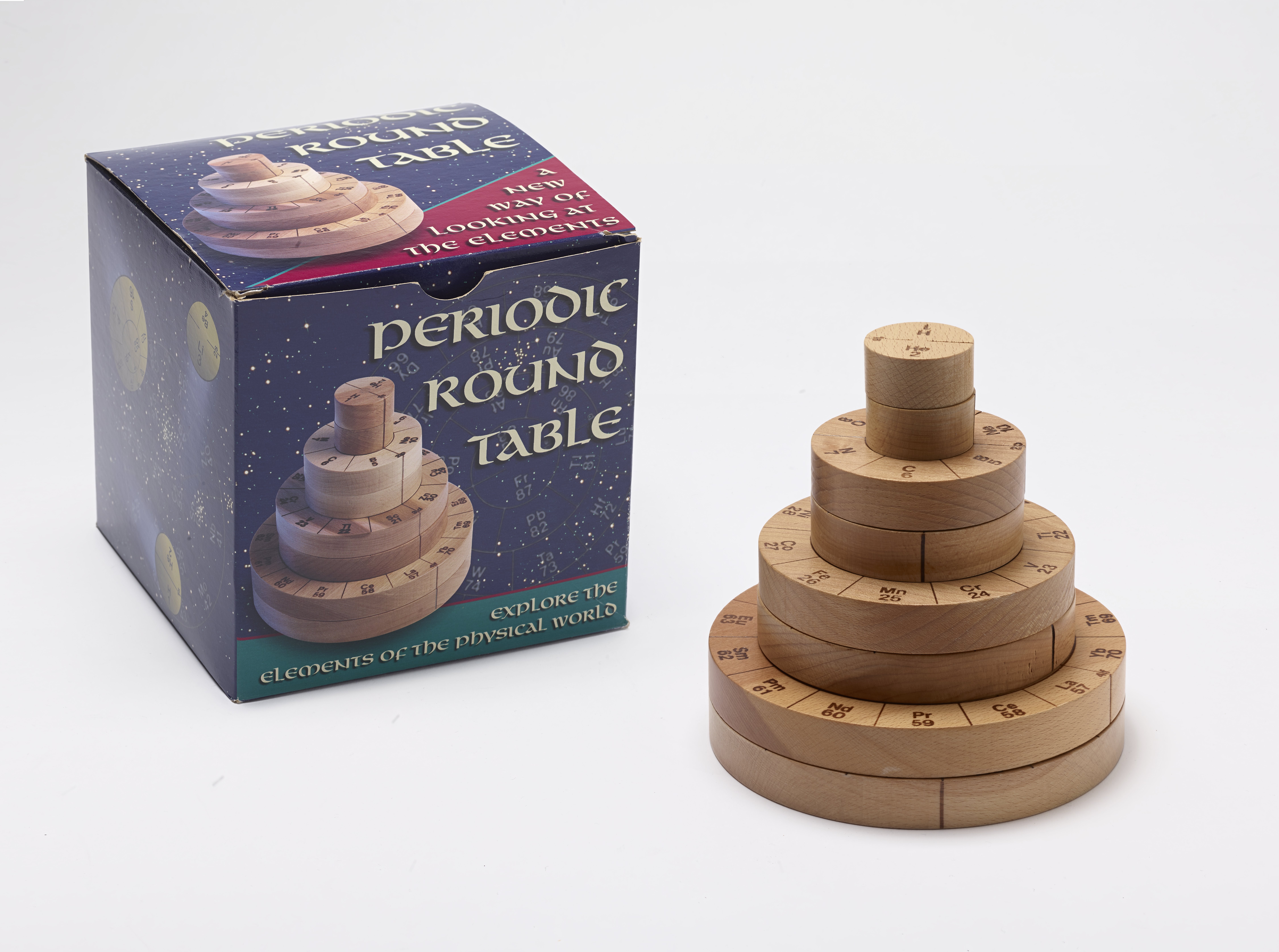 Small JPG1200 x 894px — 118 KBLarge JPG2880 x 2145px — 471 KBFull-sized JPG9000 x 6703px — 3.9 MBOriginal fileTIFF — 9000 x 6703px — 173 MBThe "Periodic Round Table" looks like a multi-layered cake. There are eight wooden layers that sit on top of one another and can be rotated. Layers are divided into chemical elements with engraved element name and number.