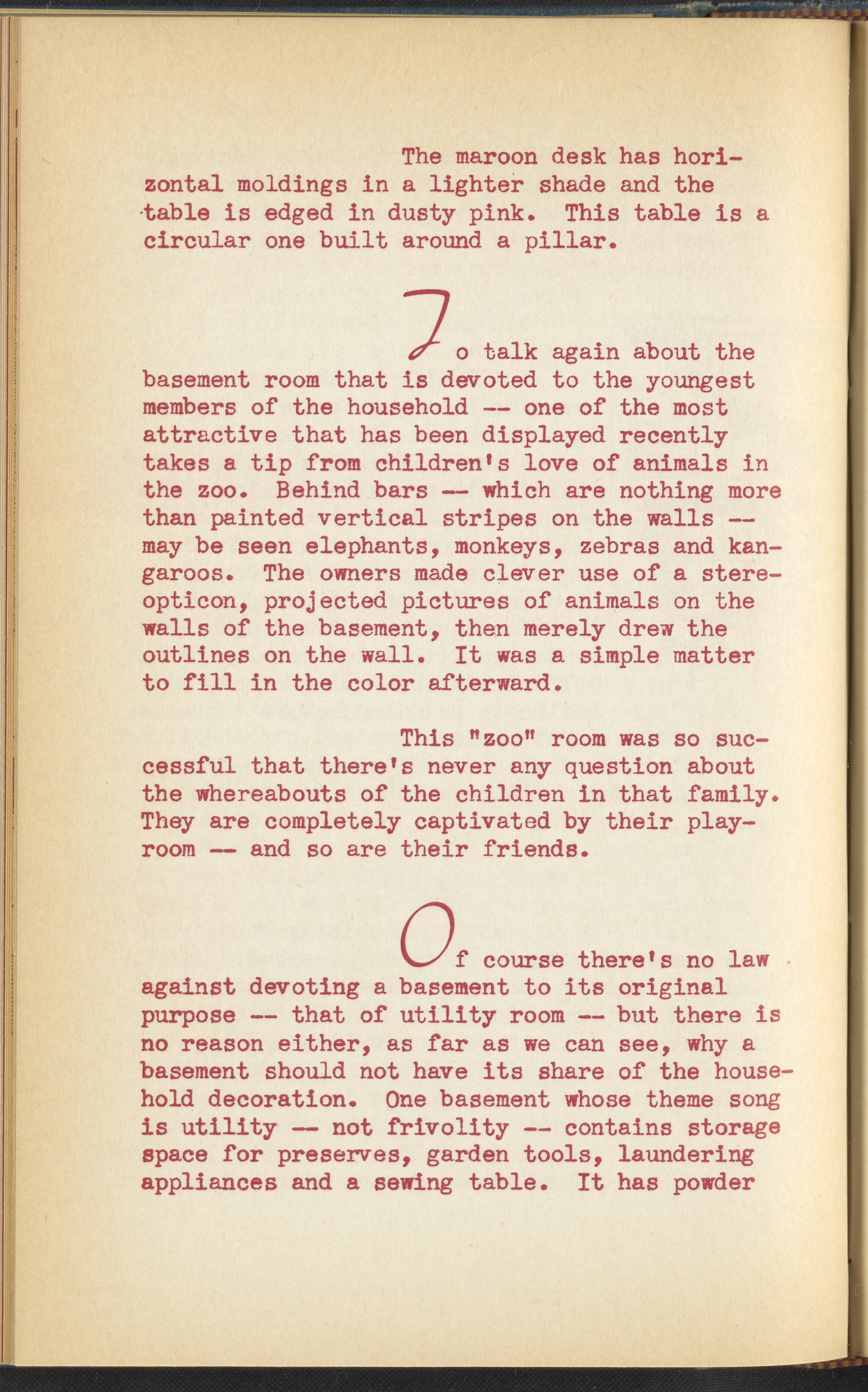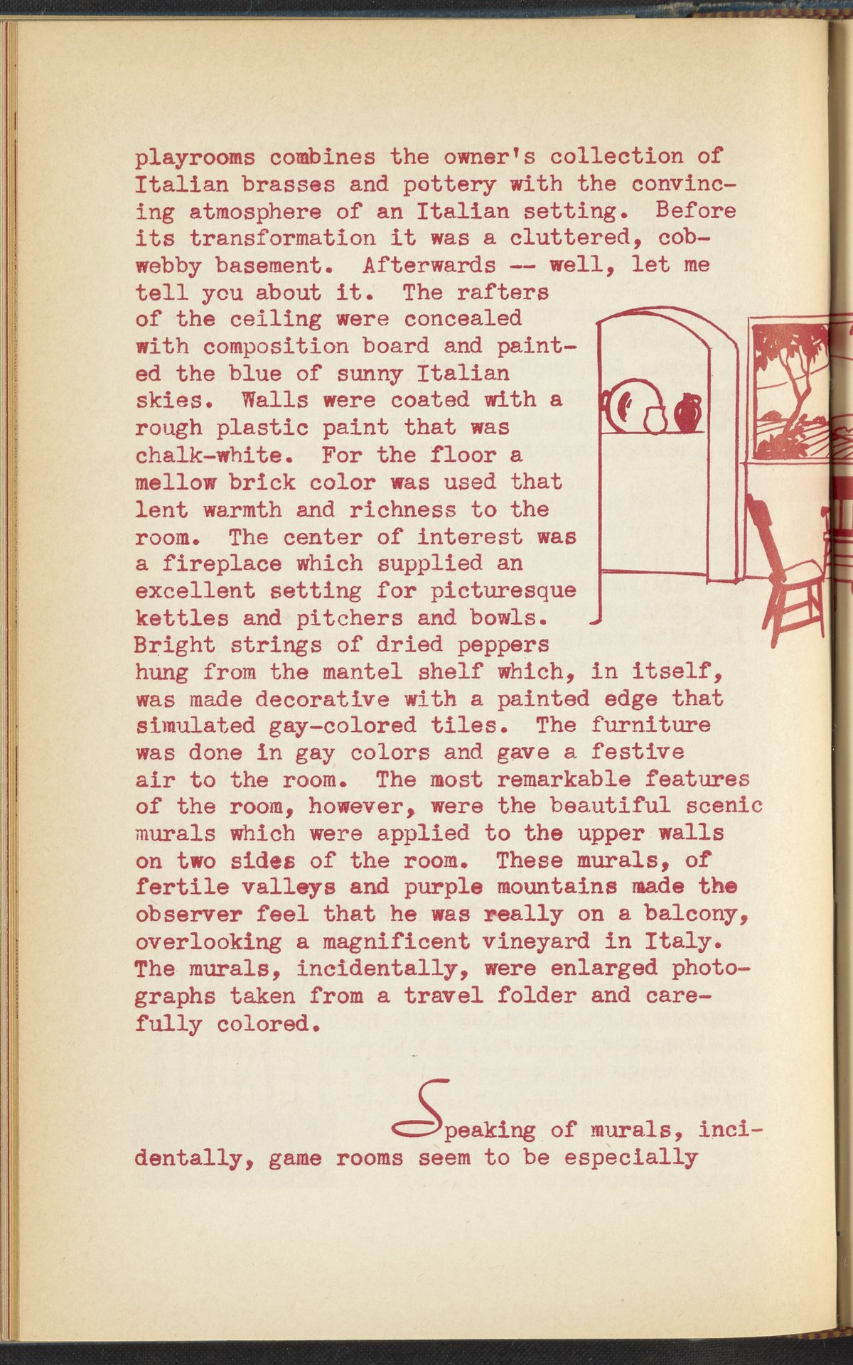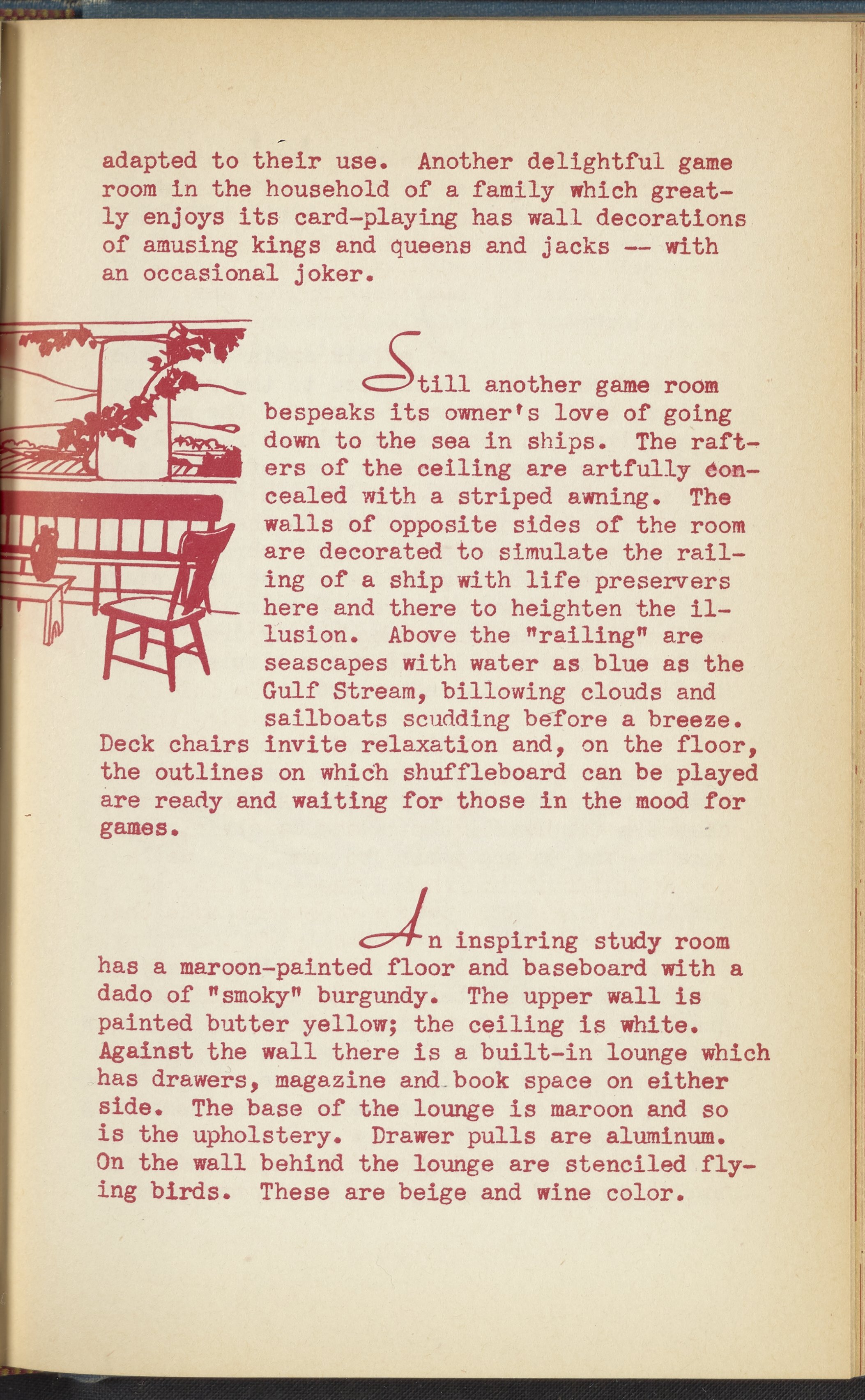 Booklet corresponding to a radio broadcast program created by the National Paint, Varnish, and Lacquer Association. The booklet discusses how to transform a home's basement or cellar into a recreation room, or "underground castle". Describes several different basement recreation rooms to inspire the reader, and provides tips for decorating a recreation room. Tips include painting a mural, adding improvements gradually, and decorating the room according to a theme or desired utility. Includes small stylized illustrations throughout and decorated covers.