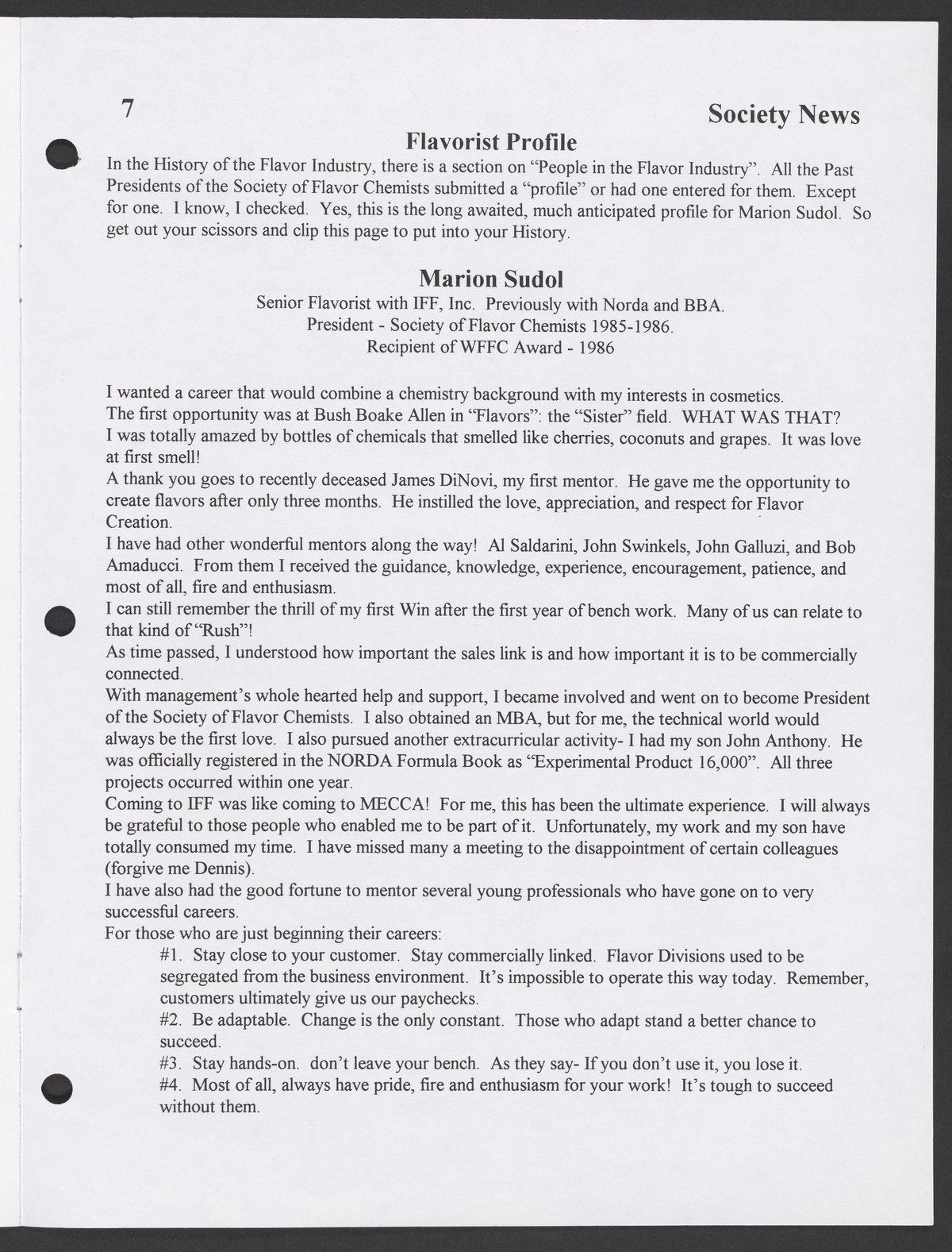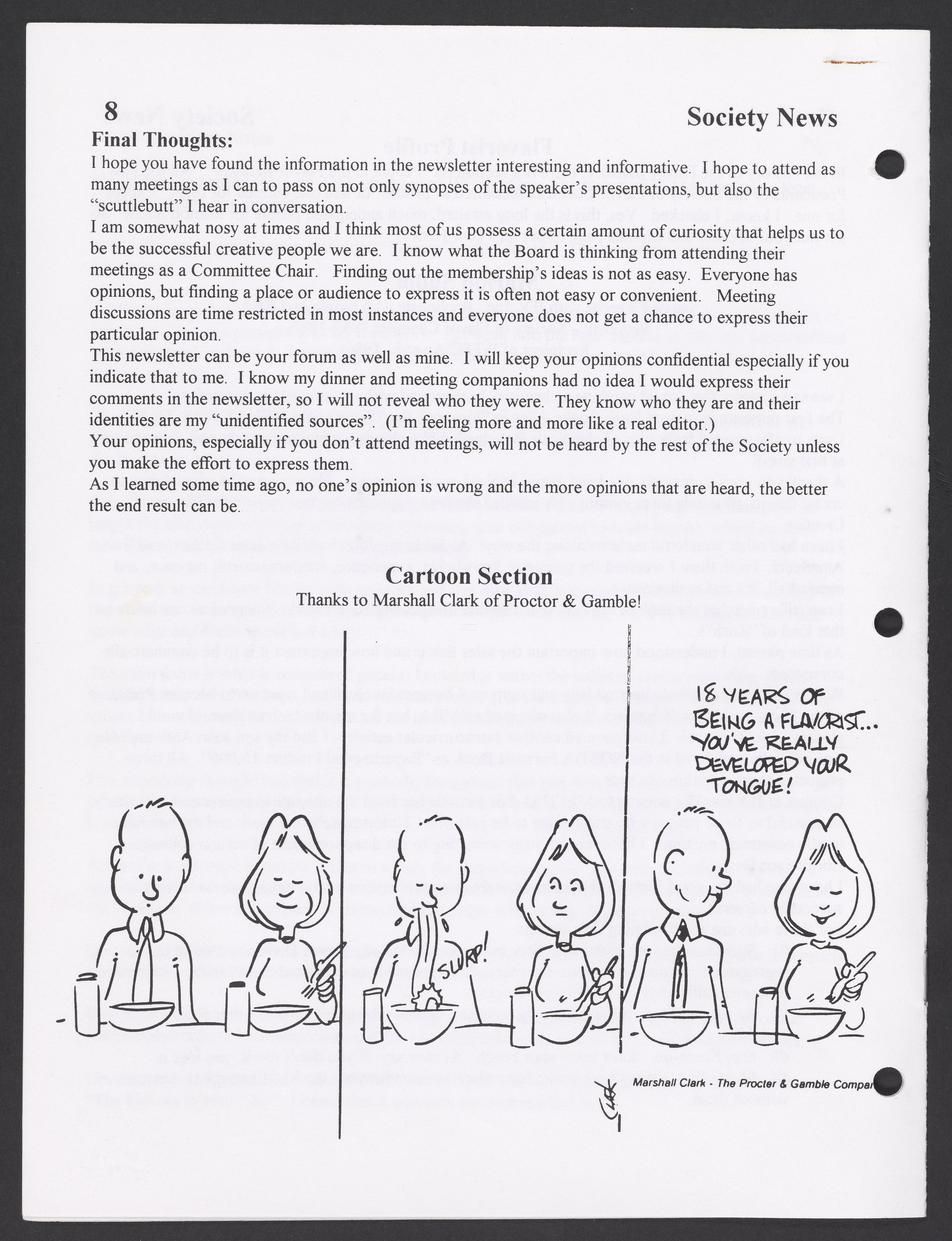 Small JPG1200 x 1573px — 349 KBLarge JPG2880 x 3775px — 1.7 MBFull-sized JPG5431 x 7118px — 5.7 MBOriginal fileTIFF — 5431 x 7118px — 111 MBSpring 1998 issue of the Society News, the Society of Flavor Chemists newsletter.