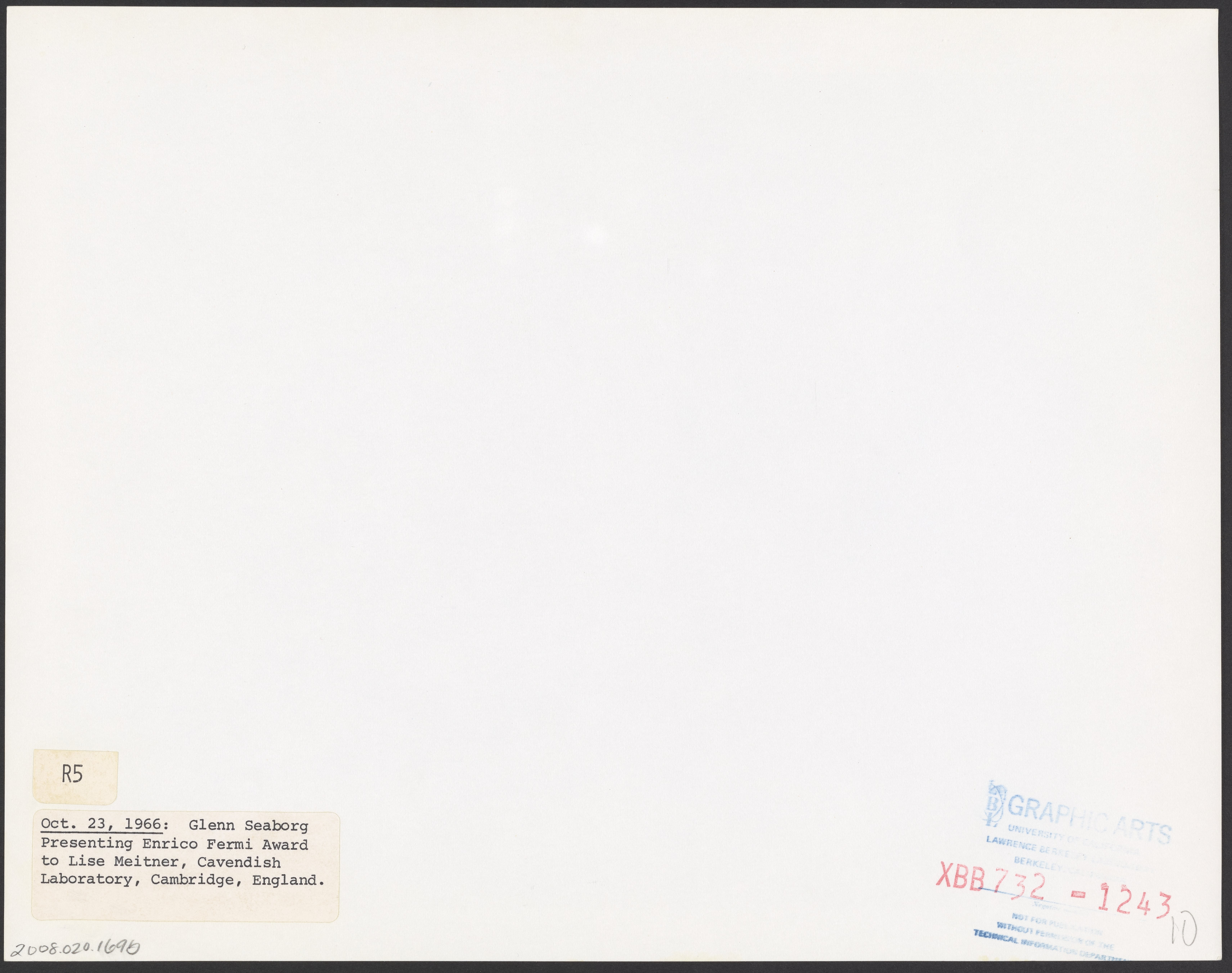 Lawrence Berkeley National Laboratory. Technical and Electronic Information Department. “1966 Enrico Fermi Award Presentation,” October 23, 1966. Records of the Lawrence Berkeley National Laboratory - Nuclear Division, Box 6. Science History Institute. Philadelphia. https://digital.sciencehistory.org/works/5e3vonb.
