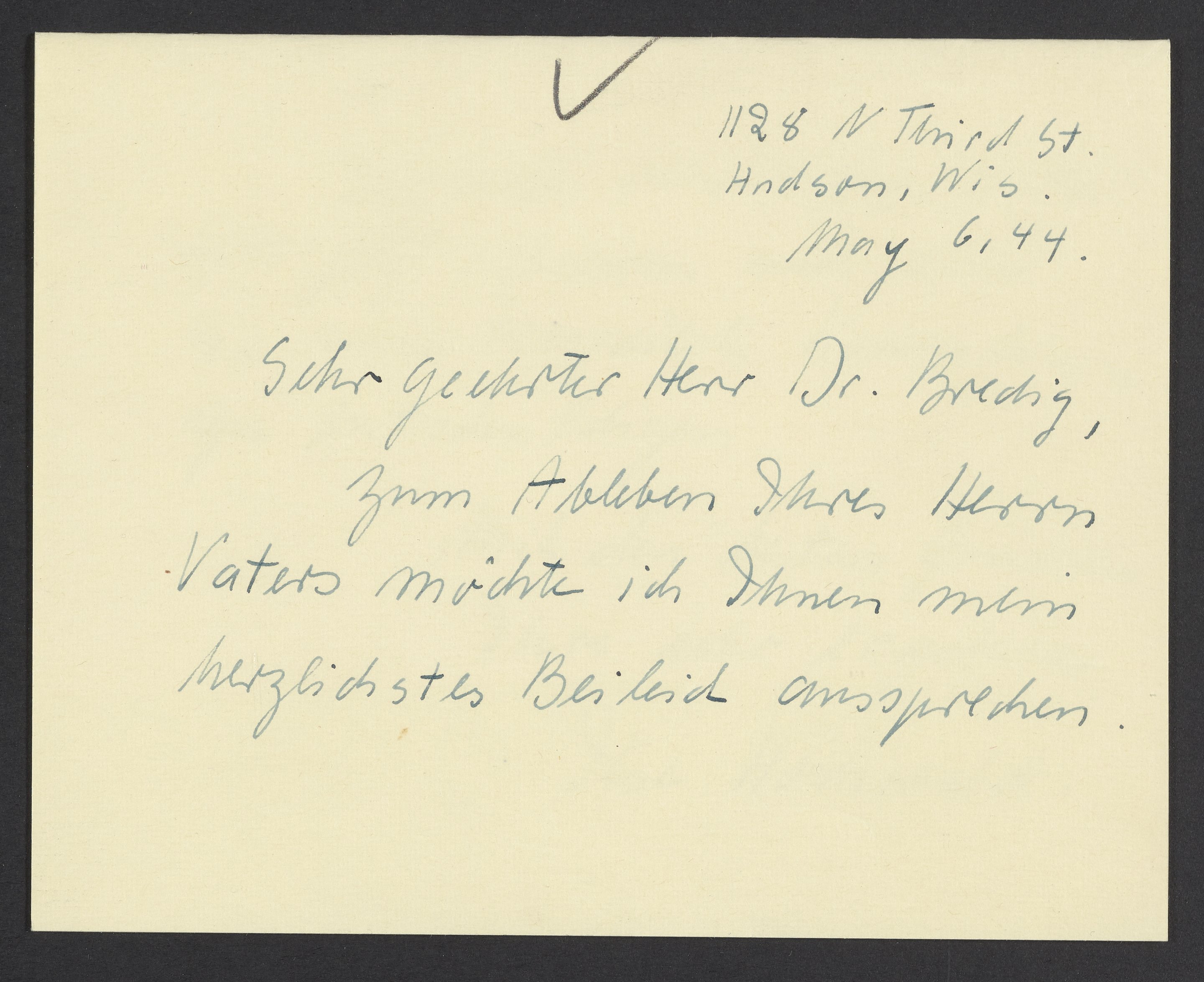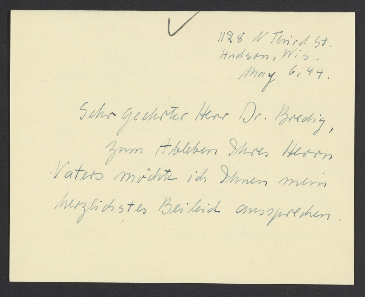 Letter of condolence from Ilse Hochwald to Max Bredig, May 6, 1944