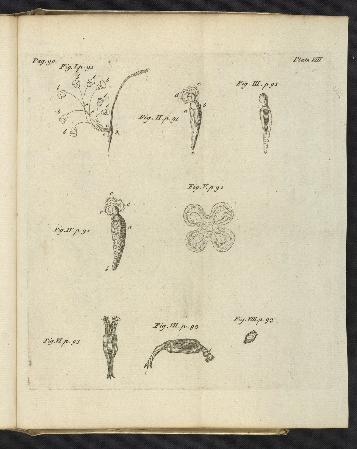 Baker, Henry. “Plate VIII: Animalcules Adhering to the Roots of Duckweed.” In The Microscope Made Easy. London, England: Robert Dodsley, 1743. https://digital.sciencehistory.org/works/5p5tkmt.
