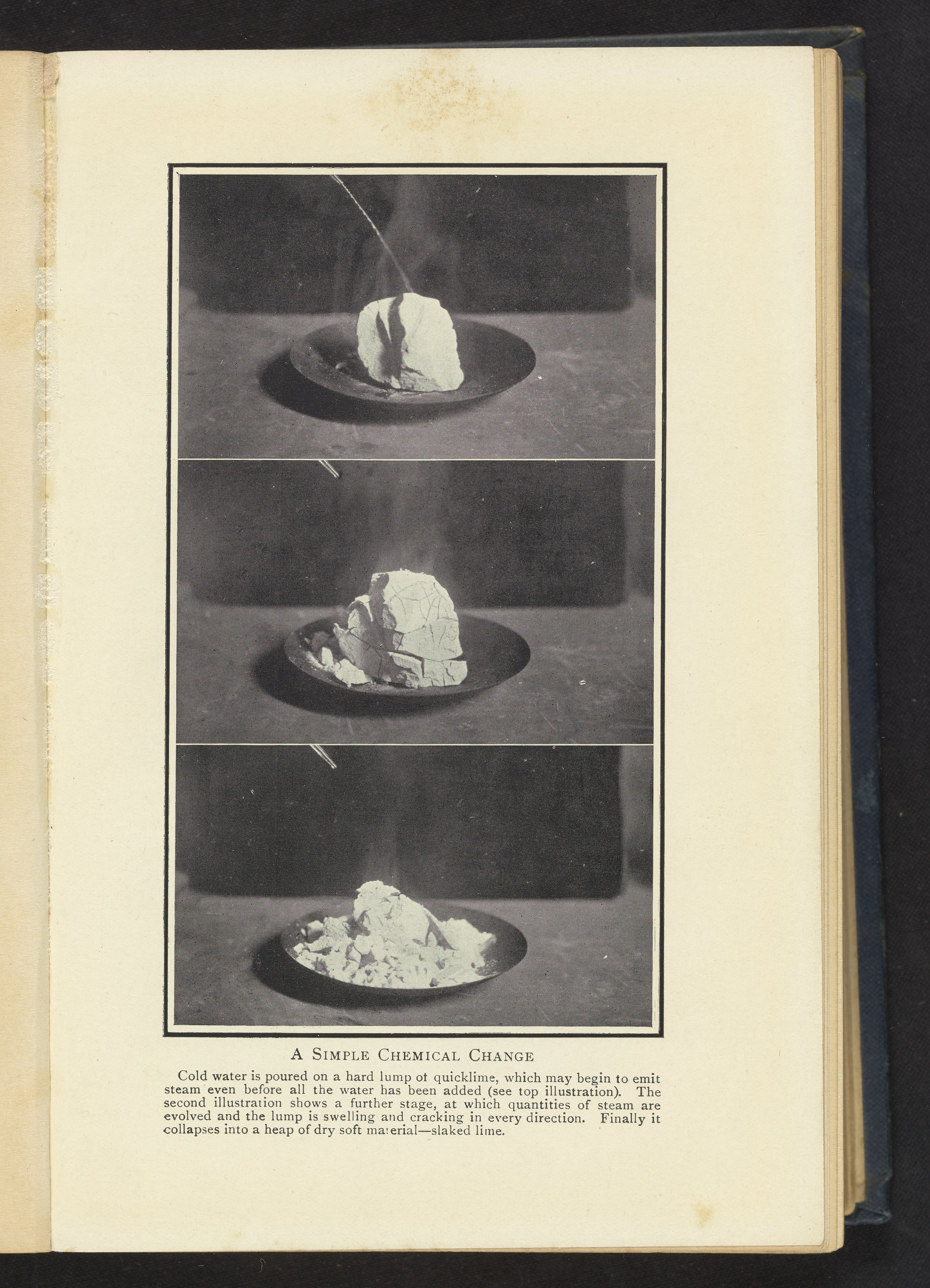 Example of a chemical change using quicklime and water