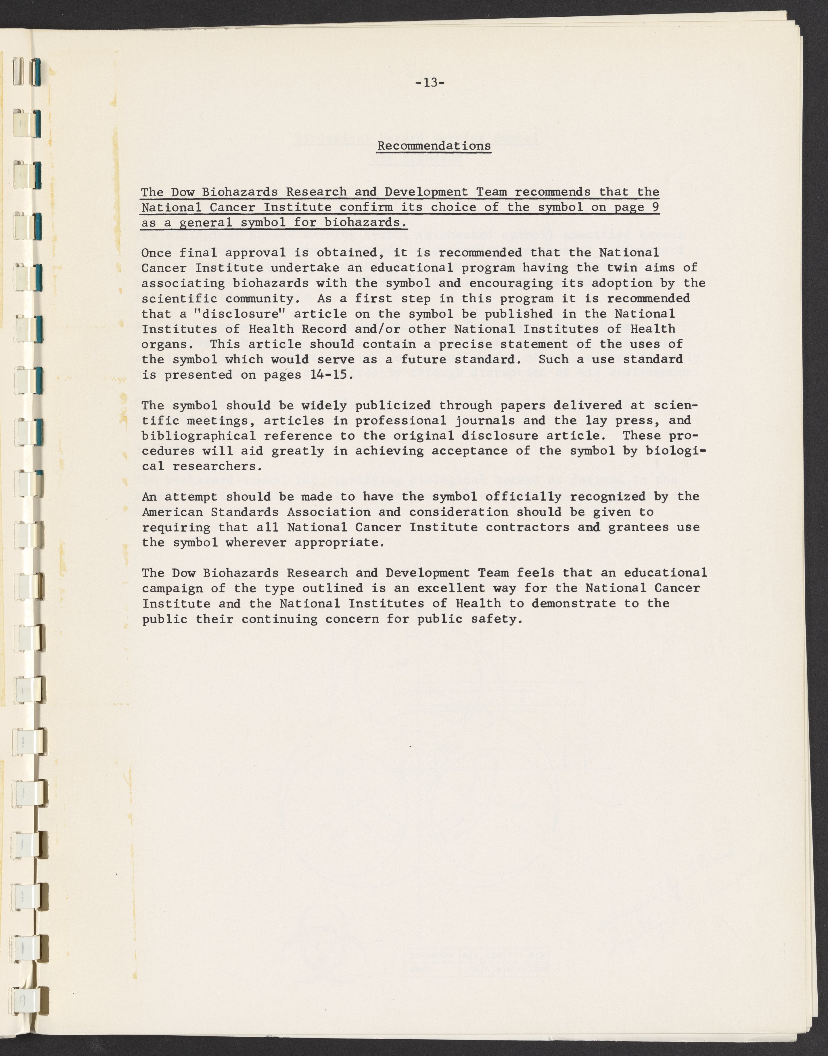 Small JPG1200 x 1535px — 204 KBLarge JPG2880 x 3683px — 1.3 MBFull-sized JPG5456 x 6977px — 4.5 MBOriginal fileTIFF — 5456 x 6977px — 109 MBReport submitted by the Dow Chemical Company Biohazard Research and Development Team to the National Cancer Institute regarding a universal biohazard symbol.