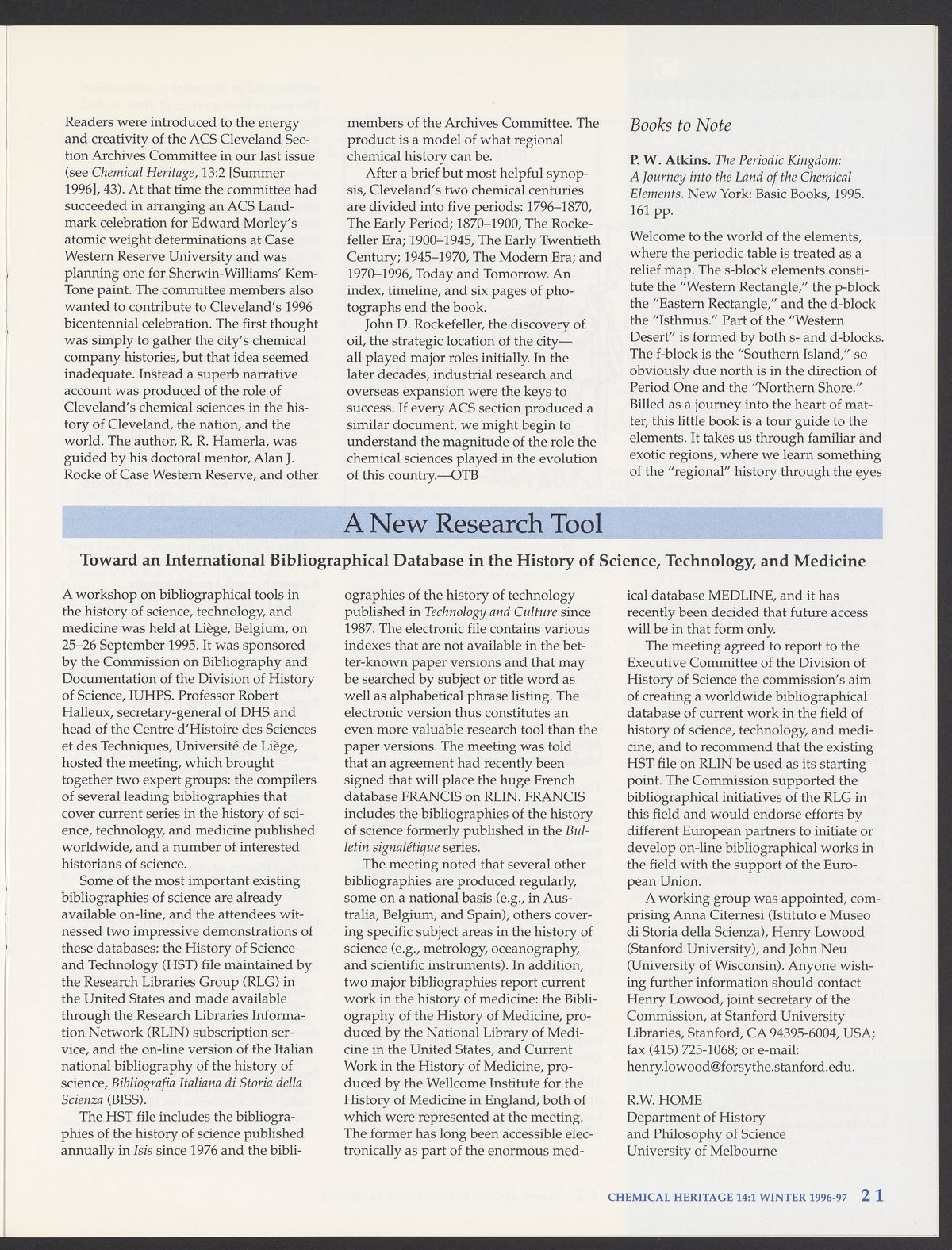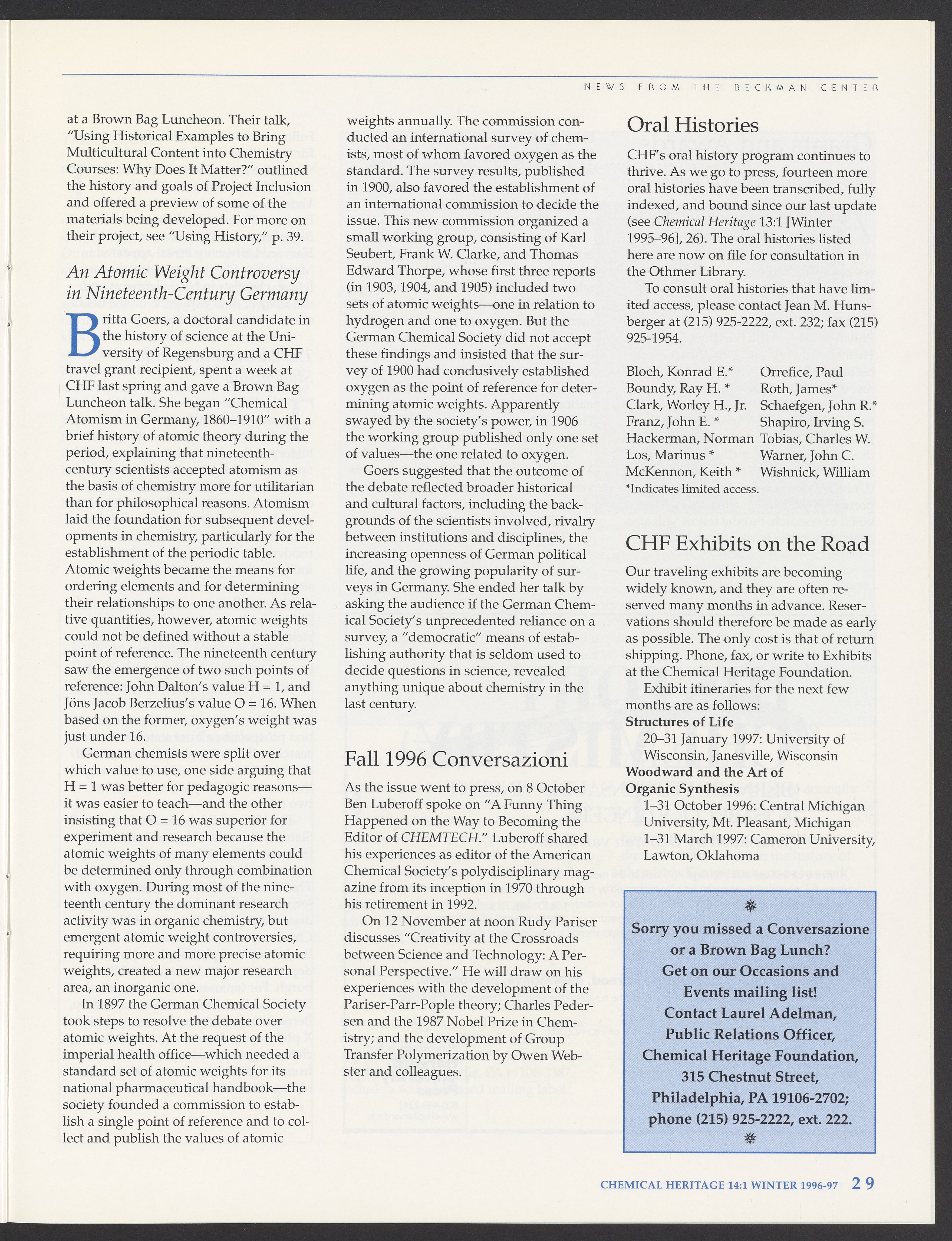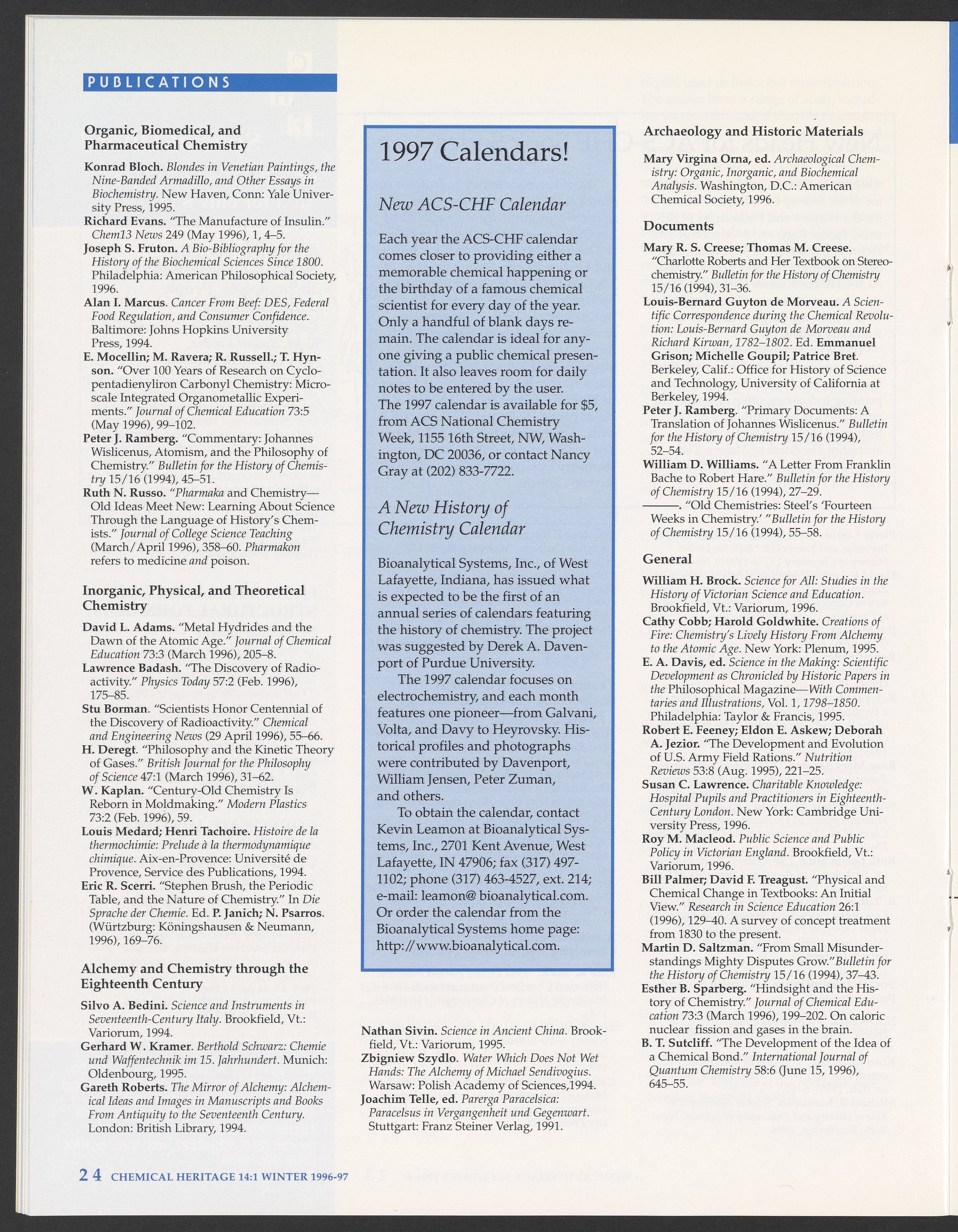 Chemical Heritage, Volume 14 Number 1