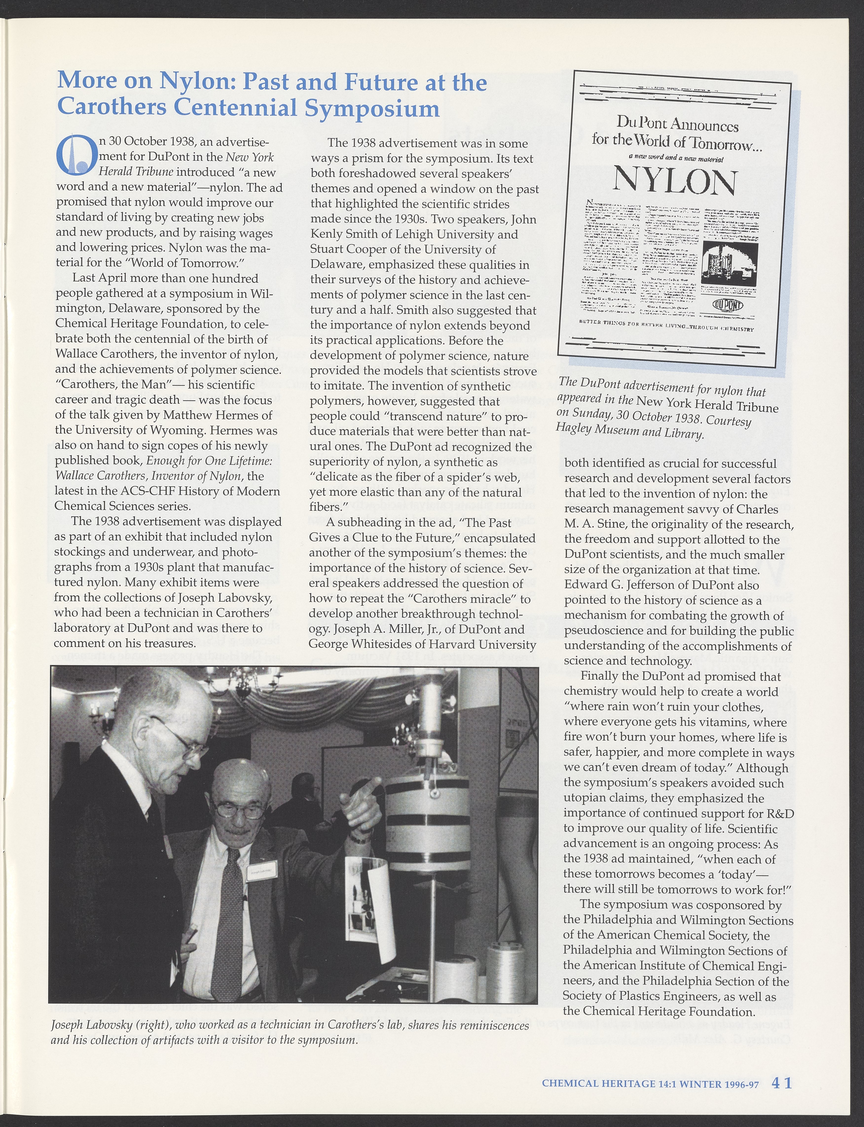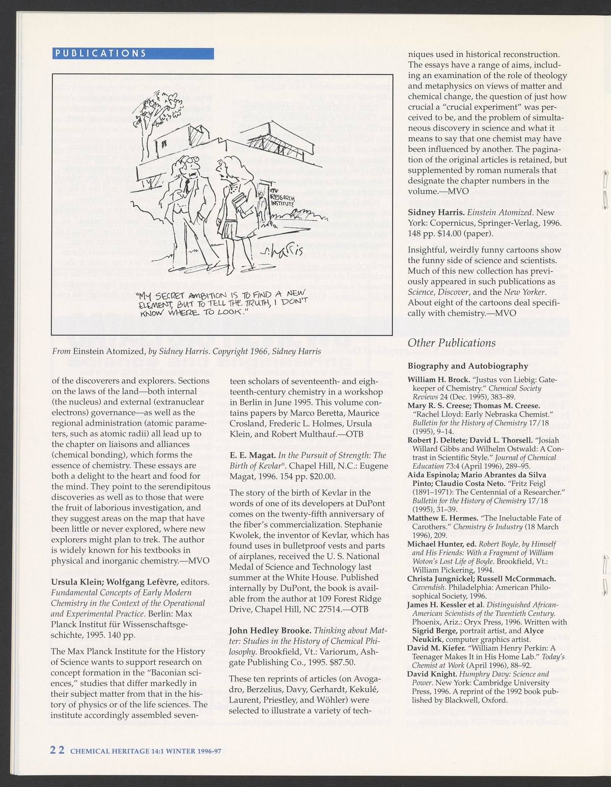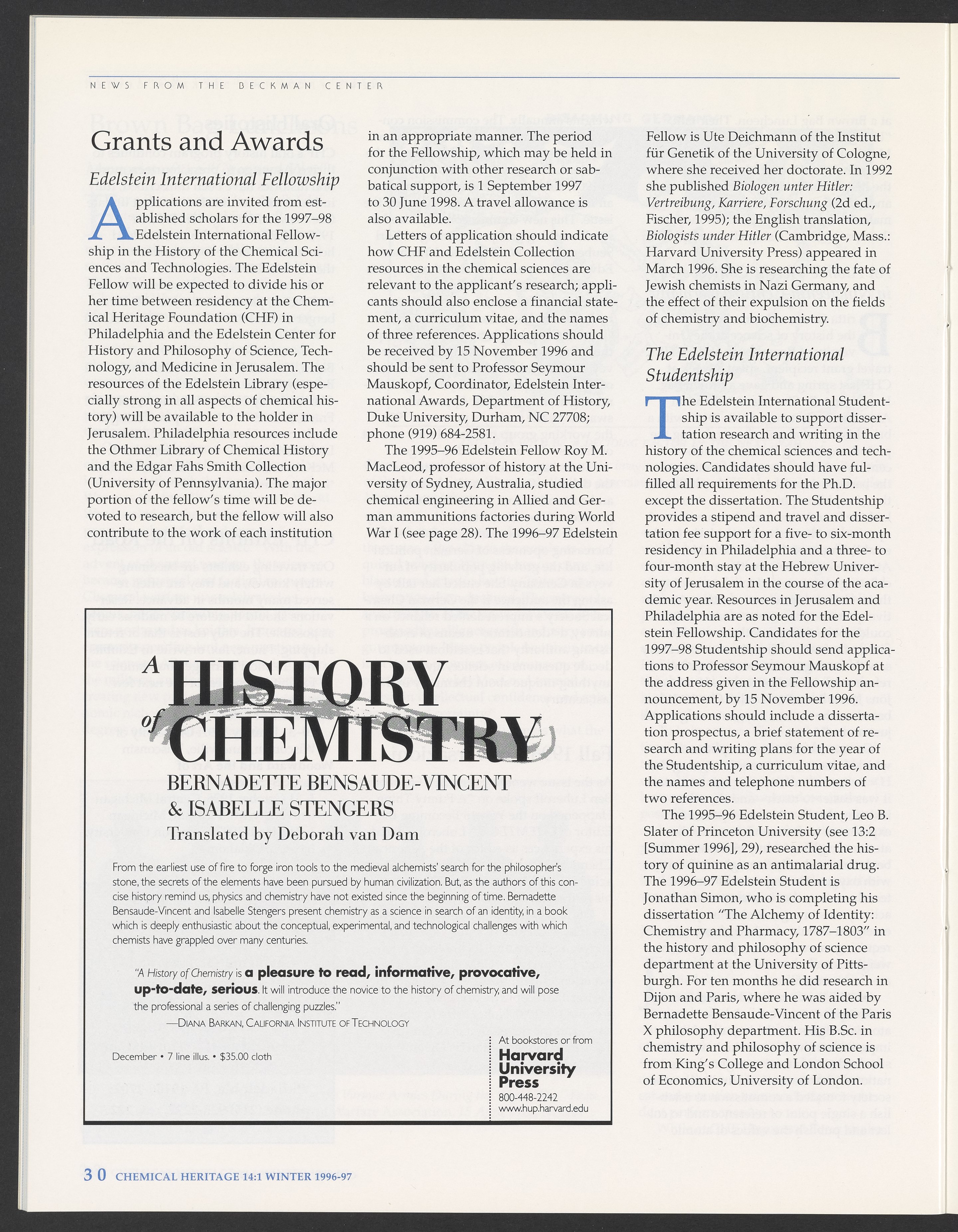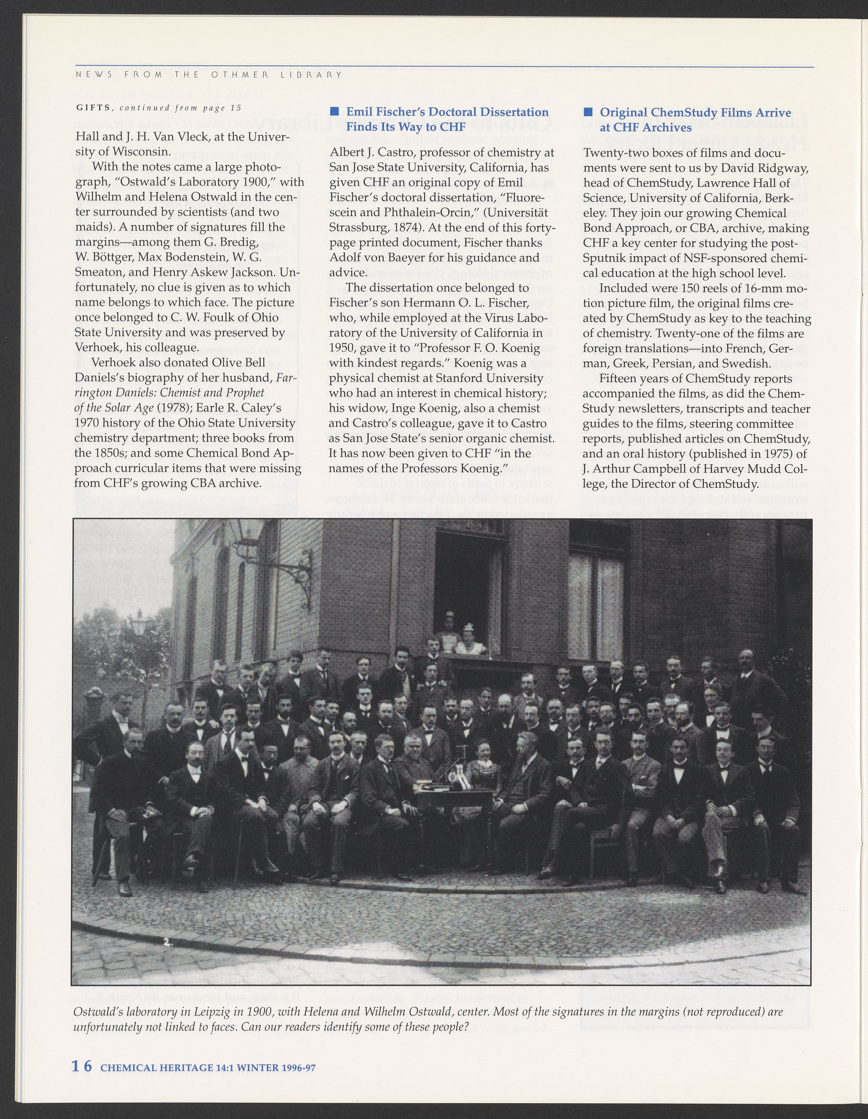 Chemical Heritage, Volume 14 Number 1