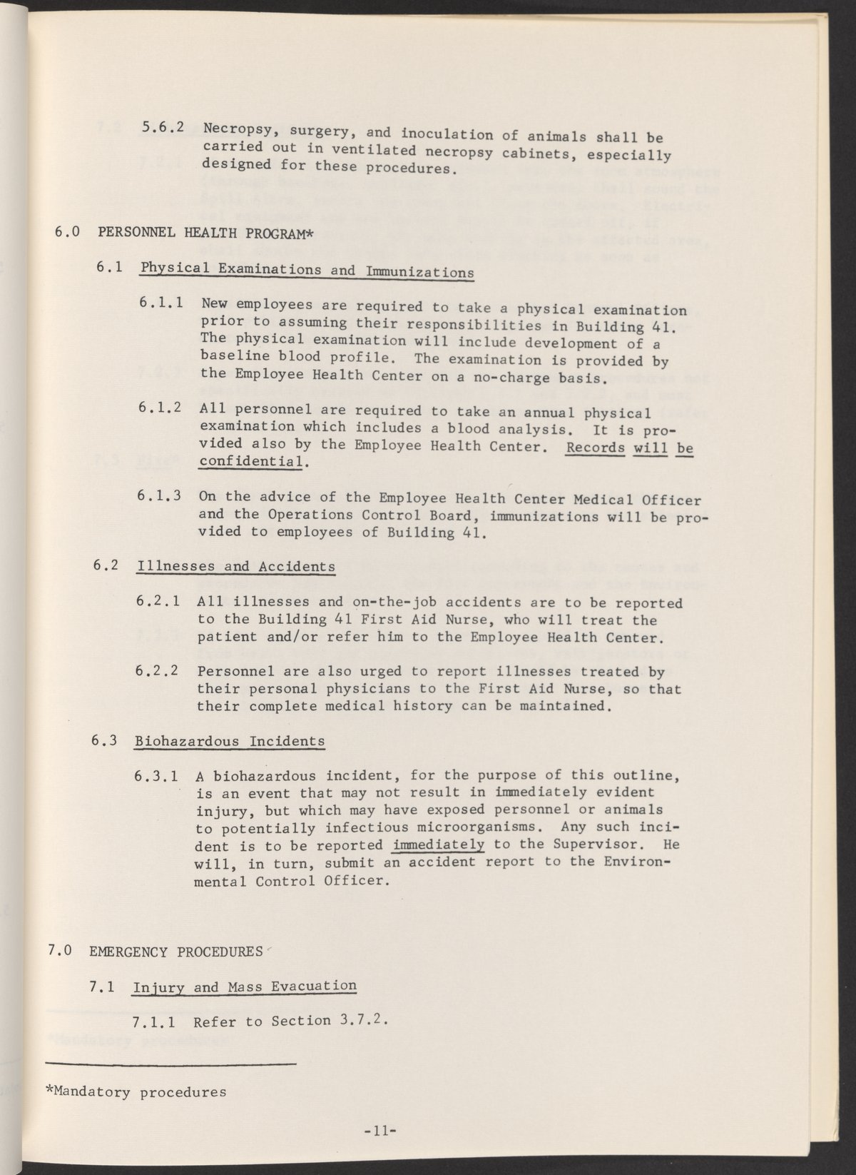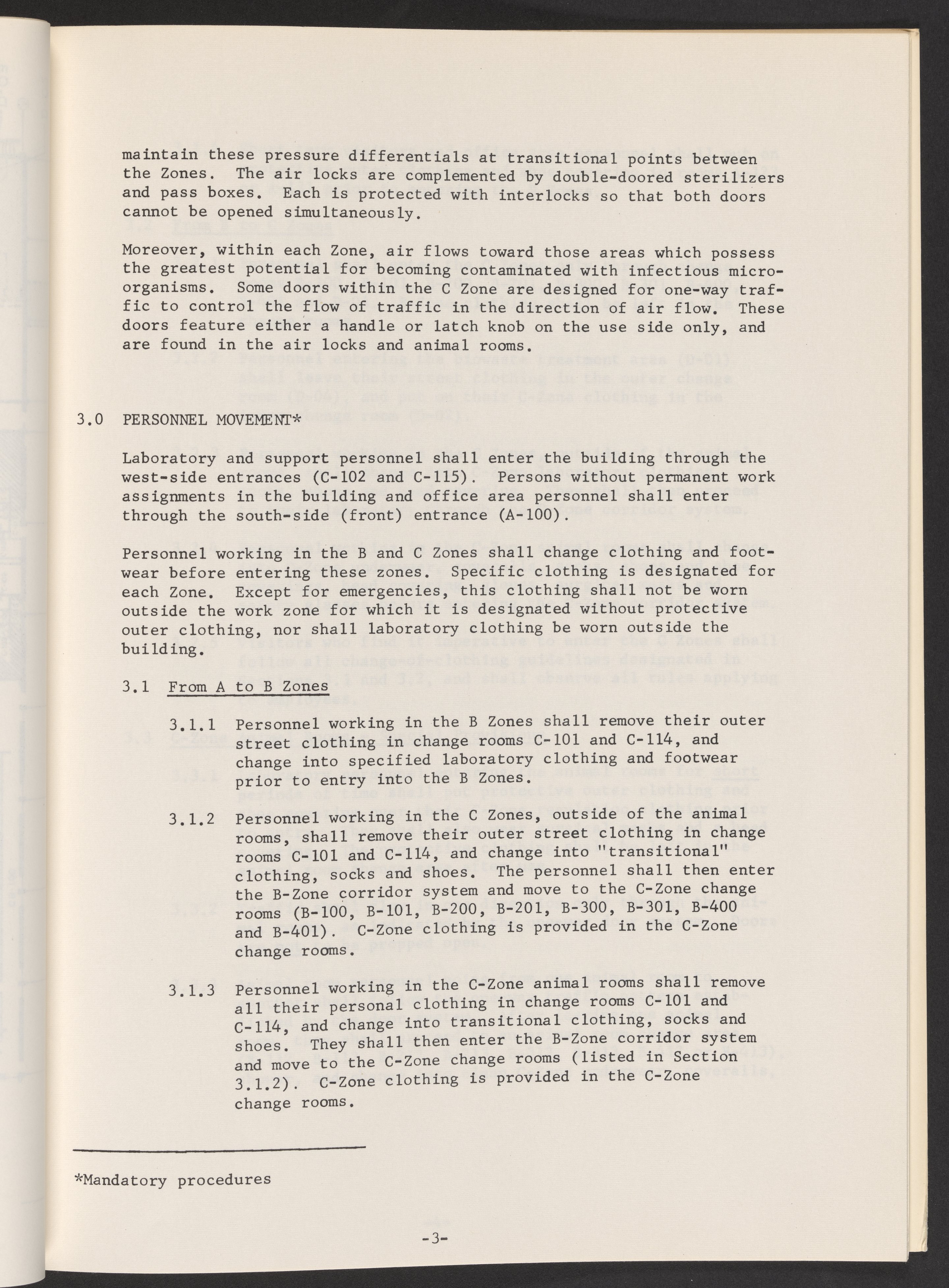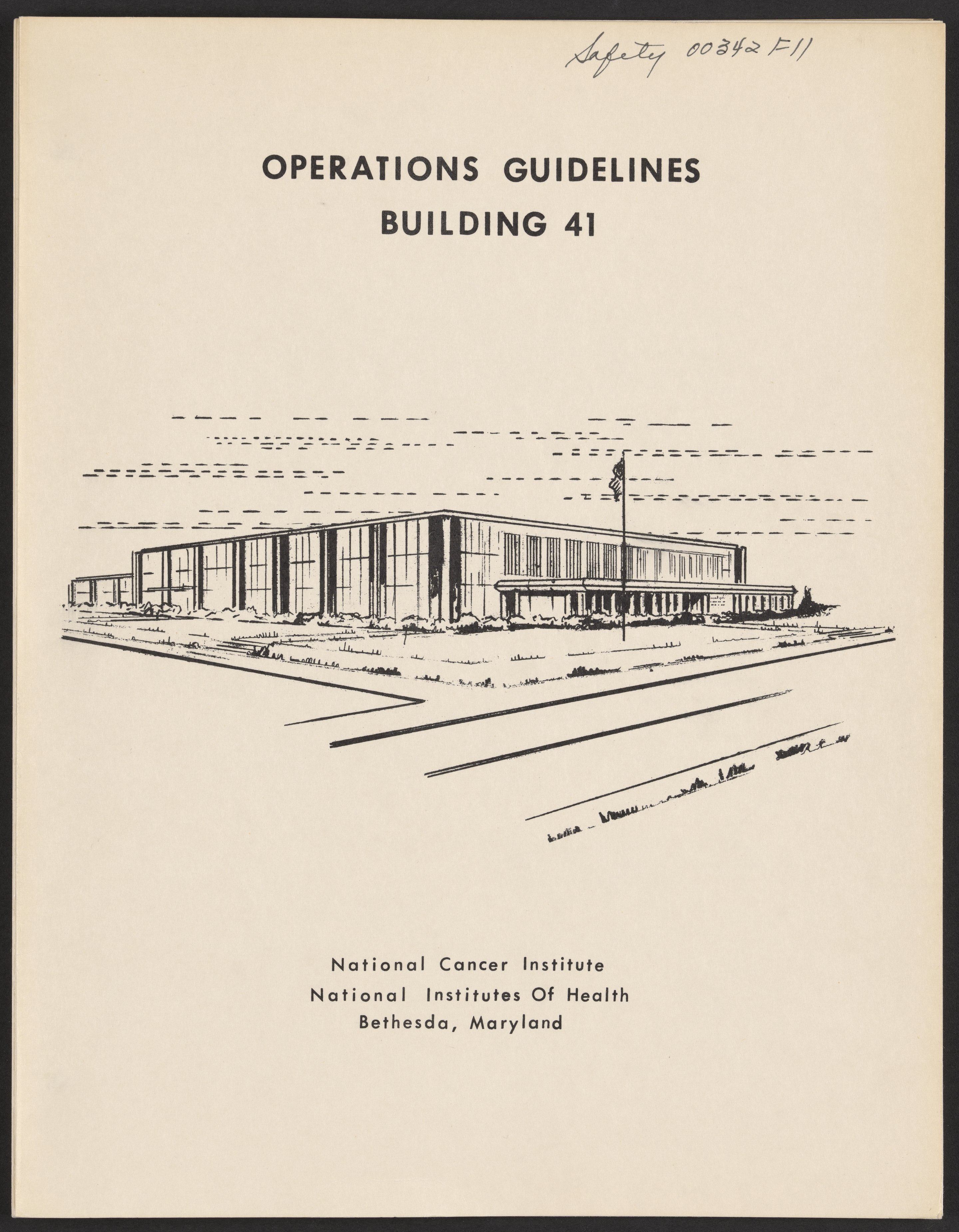 Small JPG1200 x 1542px — 205 KBLarge JPG2880 x 3701px — 1.2 MBFull-sized JPG5432 x 6980px — 4.3 MBOriginal fileTIFF — 5432 x 6980px — 108 MBOperations guidelines for Building 41, which was built for the National Cancer Institute in Bethesda, Maryland. The facility was designed to control and contain biohazards associated with cancer research virus studies.