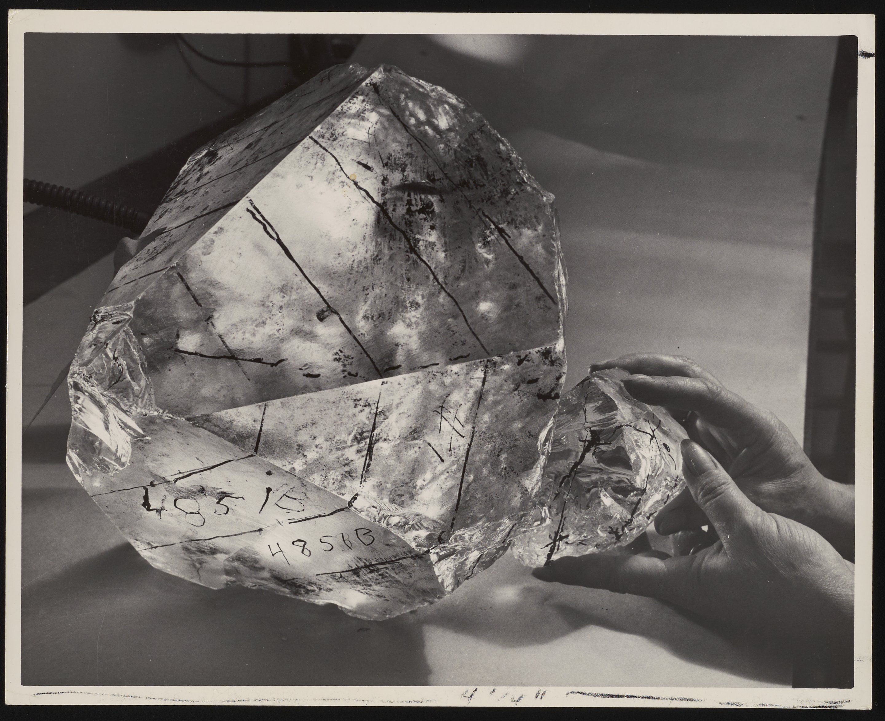 Connell, William. “Quartz Crystal before Being Cut for Use in Beckman DU Spectrophotometers,” 1950–1959. Beckman Historical Collection, Box 56, Folder 12. Science History Institute. Philadelphia. https://digital.sciencehistory.org/works/5x21tf41f.