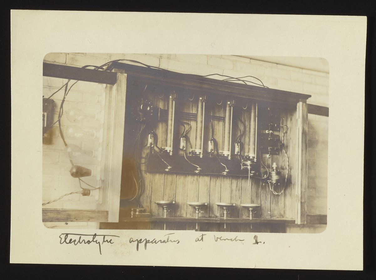 “Laboratory Work Bench with Electrolytic Apparatus,” 1920–1929. Arthur Greenberg Collection of Laboratory Photographs, Box 1. Science History Institute. Philadelphia. https://digital.sciencehistory.org/works/5x21tf99v.