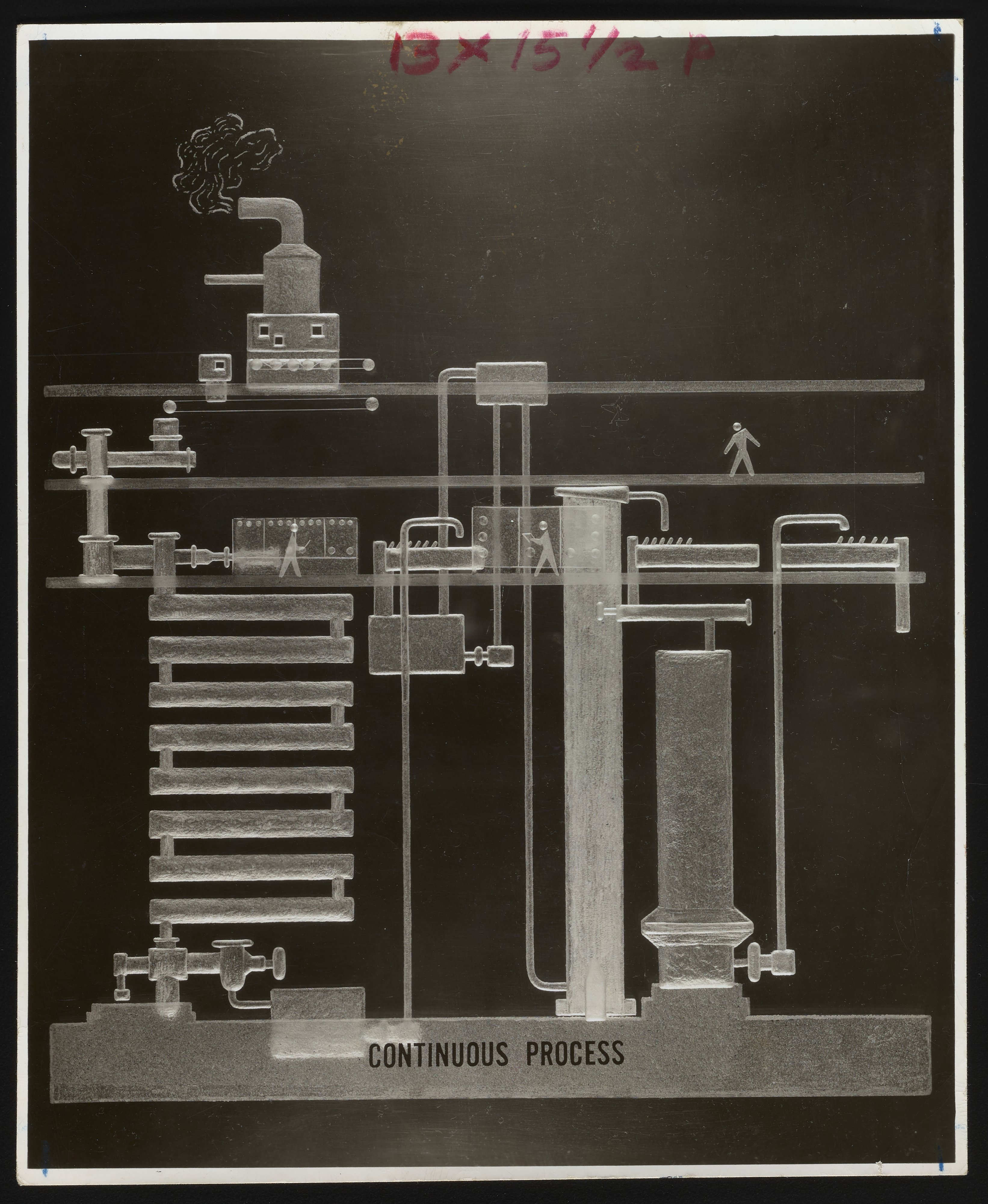 Hercules Incorporated. “Continuous Digester System for Hercules Hopewell Plant,” April 1953. Photographs from the Records & Ephemera of Hercules Incorporated, Box 1, Folder 36. Science History Institute. Philadelphia. https://digital.sciencehistory.org/works/6108vb99d.