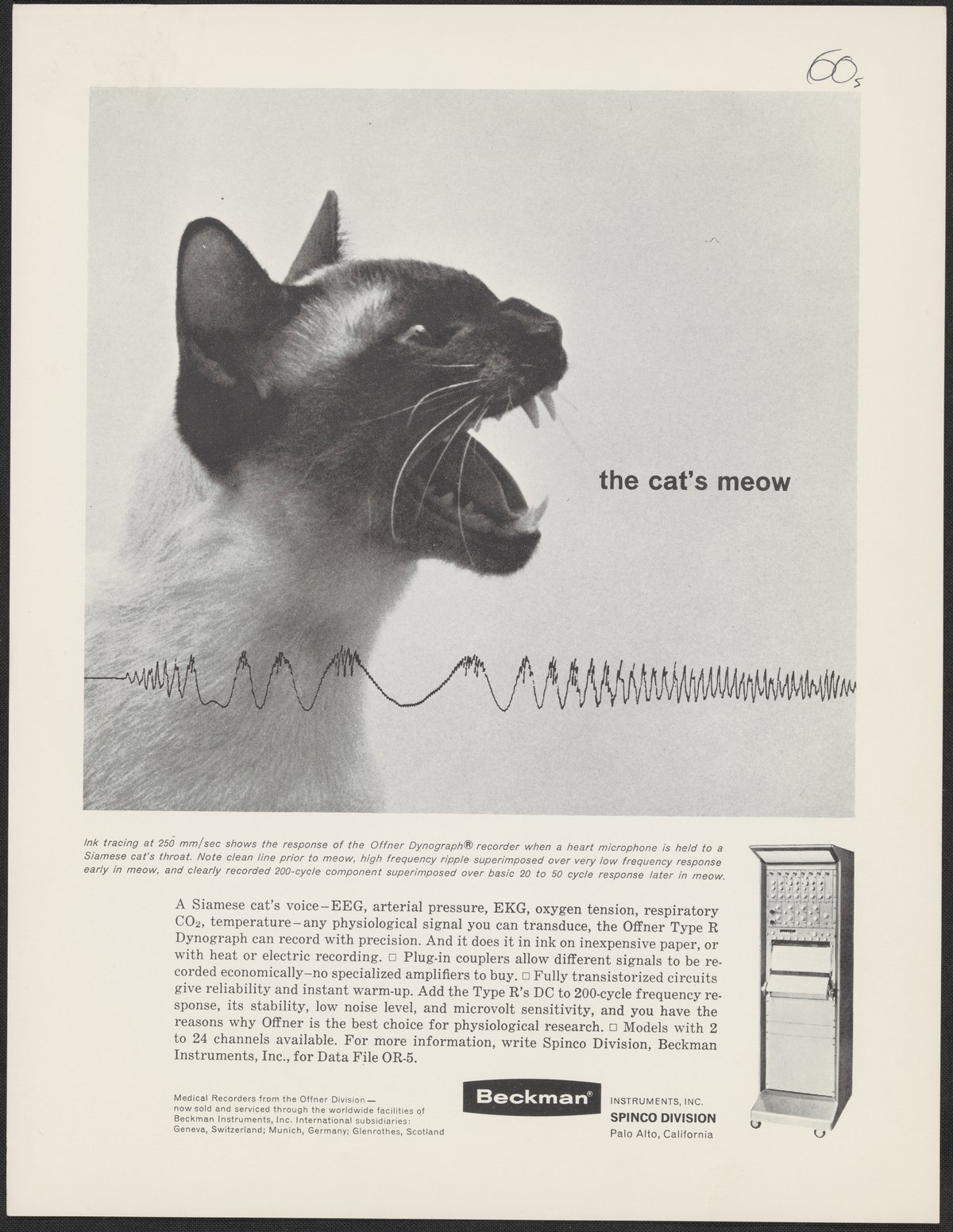Beckman Instruments, Inc. “The Cat's Meow,” 1960–1969. Beckman Historical Collection, Box 49, Folder 28. Science History Institute. Philadelphia. https://digital.sciencehistory.org/works/64778gt.