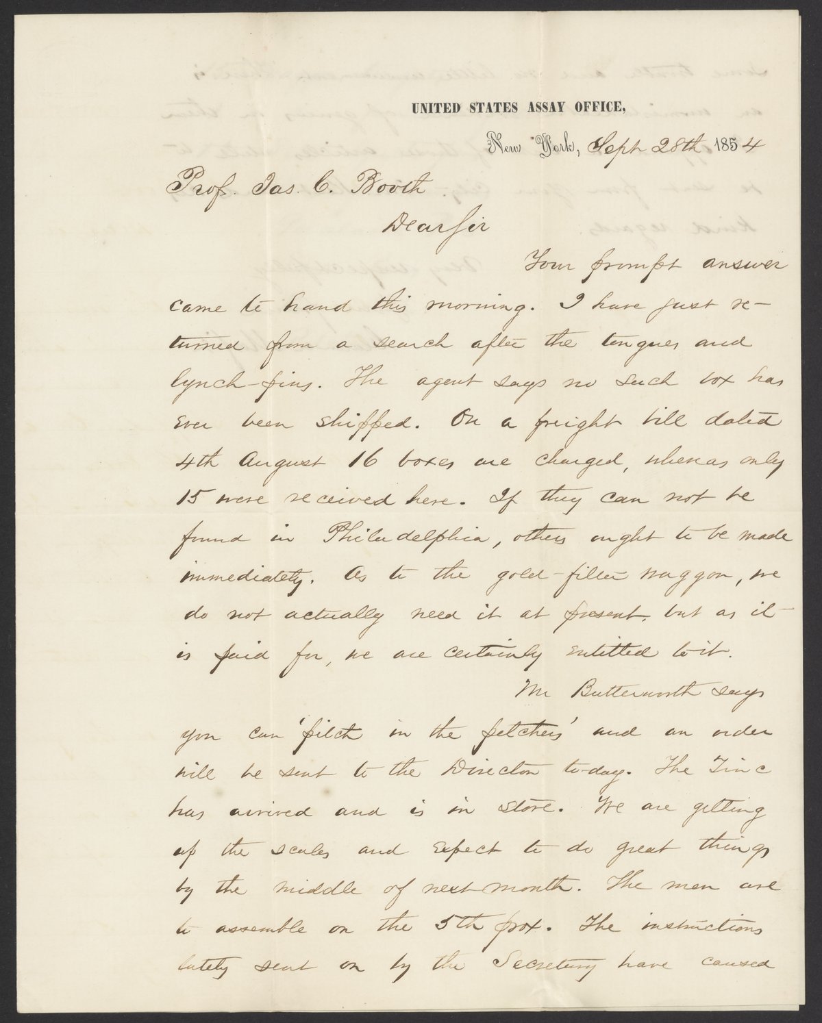 Letter from Clarence Morfit to James Curtis Booth, September 28, 1854