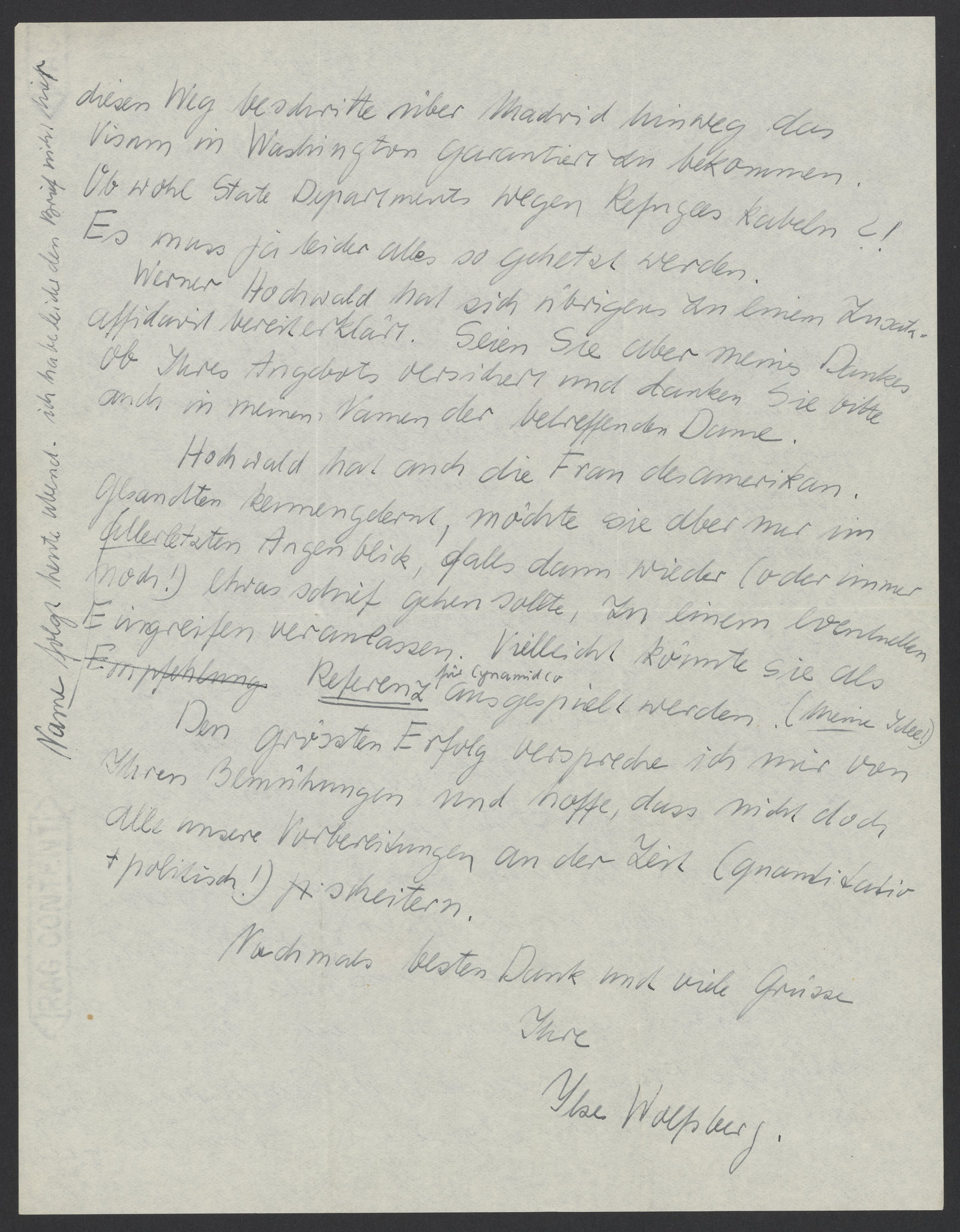Small JPG1200 x 1535px — 293 KBLarge JPG2880 x 3685px — 1.7 MBFull-sized JPG5380 x 6884px — 5.5 MBOriginal fileTIFF — 5380 x 6884px — 106 MBIlse Wolfsberg thanks Max Bredig (1902-1977) for helping Fritz Hochwald (1897-1968) emigrate to the United States. Wolfsburg writes about the many ways they are trying to help Hochwald obtain a visa, including writing affidavits, contacting senators, and using contacts in Madrid .