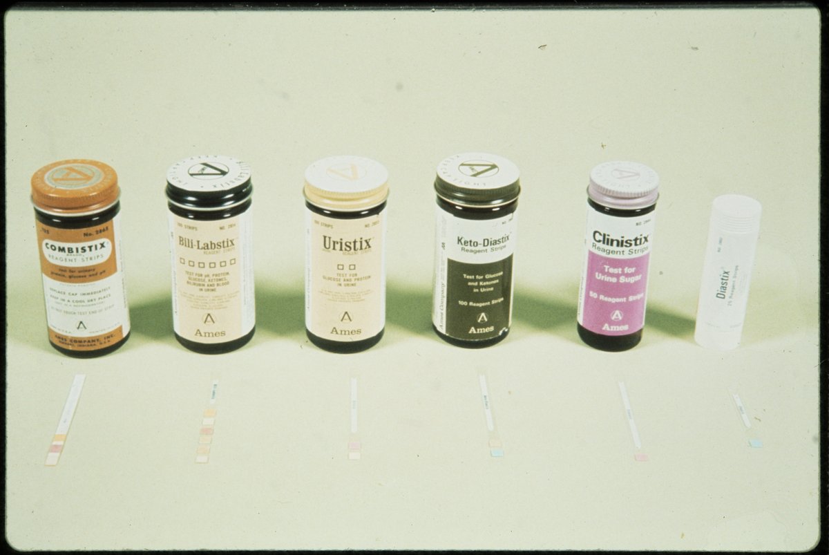 “Assorted Reagent Strips for Urine Sugar Testing,” 1970–1979. Photographs from the Dr. Michael Somogyi Collection, Box 2. Science History Institute. Philadelphia. https://digital.sciencehistory.org/works/6cp44kv.