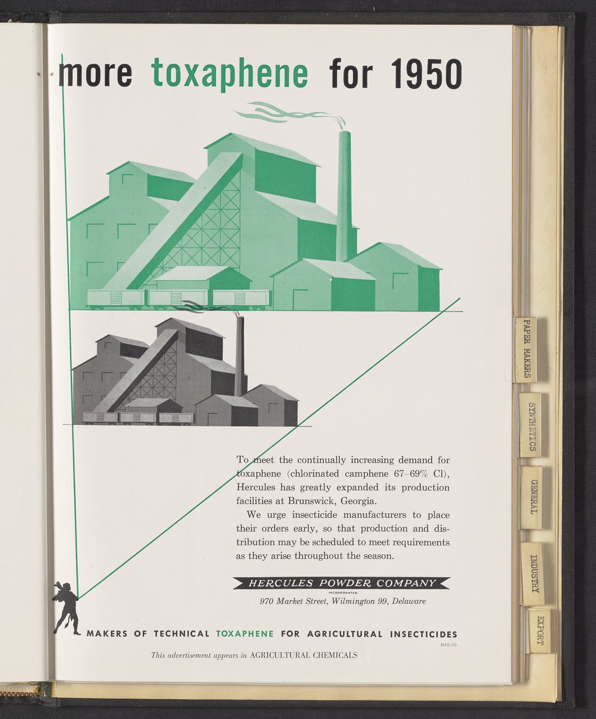 Hercules Incorporated. “More Toxaphene for 1950.” 1949 Hercules Advertisements, 1949. Records of Hercules Incorporated, Volume 1949. Science History Institute. Philadelphia. https://digital.sciencehistory.org/works/6d56zx497.