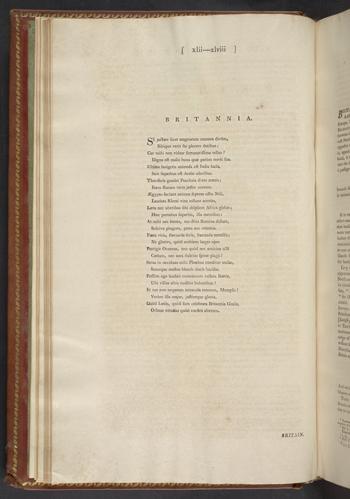 Britannia is separated into three distinct sections. The first section contains a chronological survey of British history that traces the origins of the peoples who formed British nationalities. The second and third sections are arranged topographically and contain narratives that link all regions of England, Wales, Scotland, Ireland, and the adjacent isles.
