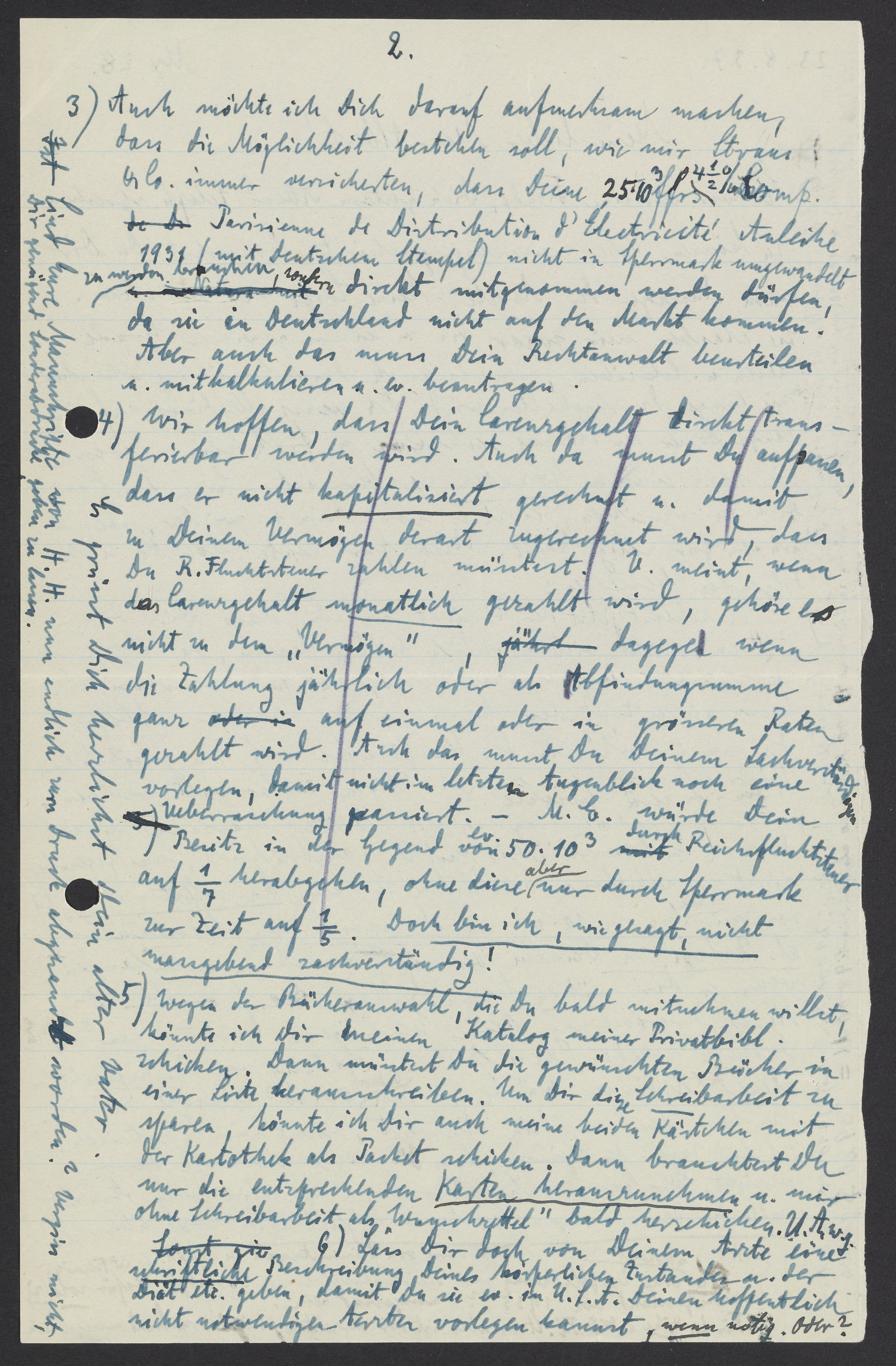 3) I would also like to draw your attention to the fact that there should be the possibility, as Straus & Co. always assured me, that your 25.10 (3) in French francs (4½% ) of your Parisian Electricity Supply Company stocks from 1931 (with a German stamp) does not need to be converted into blocked marks, but may be taken directly with you, since they will not be placed on the German market. However, your lawyer must also assess and calculate this and possibly apply for it.