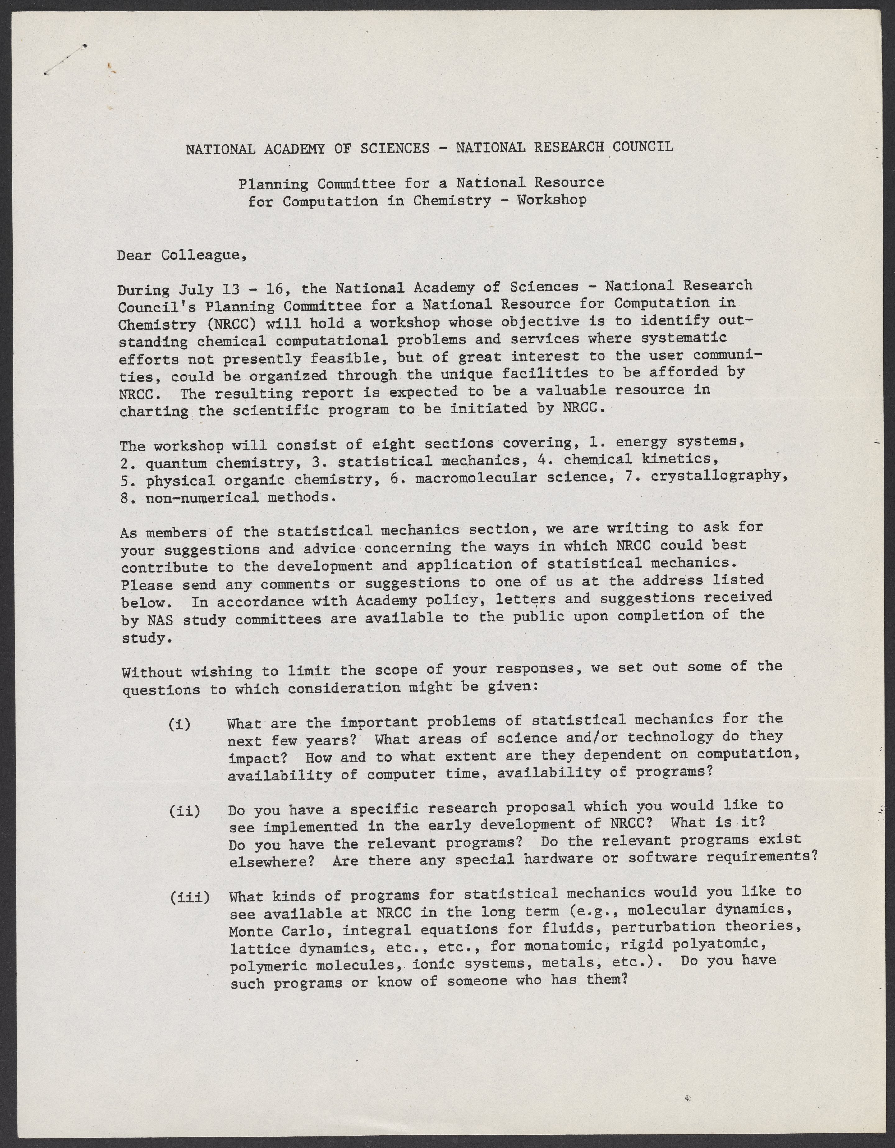 Lawrence Berkeley Laboratory. “Workshop on a National Resource for Computation in Chemistry,” 1976. William A. Lester, Jr. Papers, Box 3, Folder 12. Science History Institute. Philadelphia. https://digital.sciencehistory.org/works/6qnstfz.